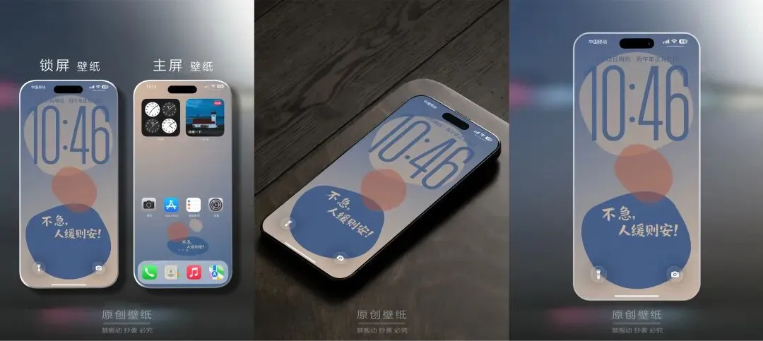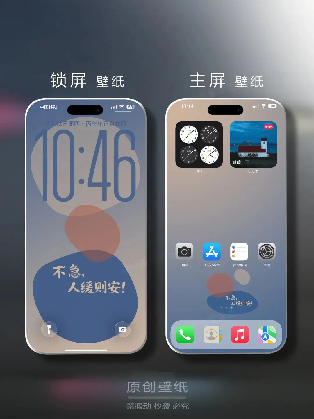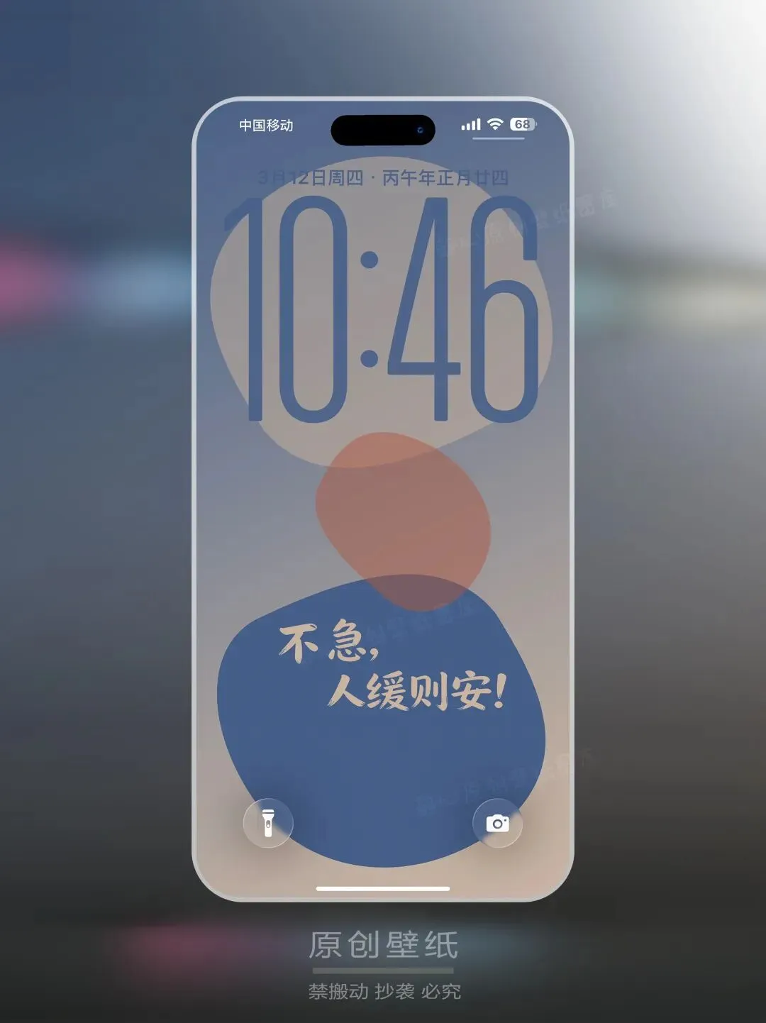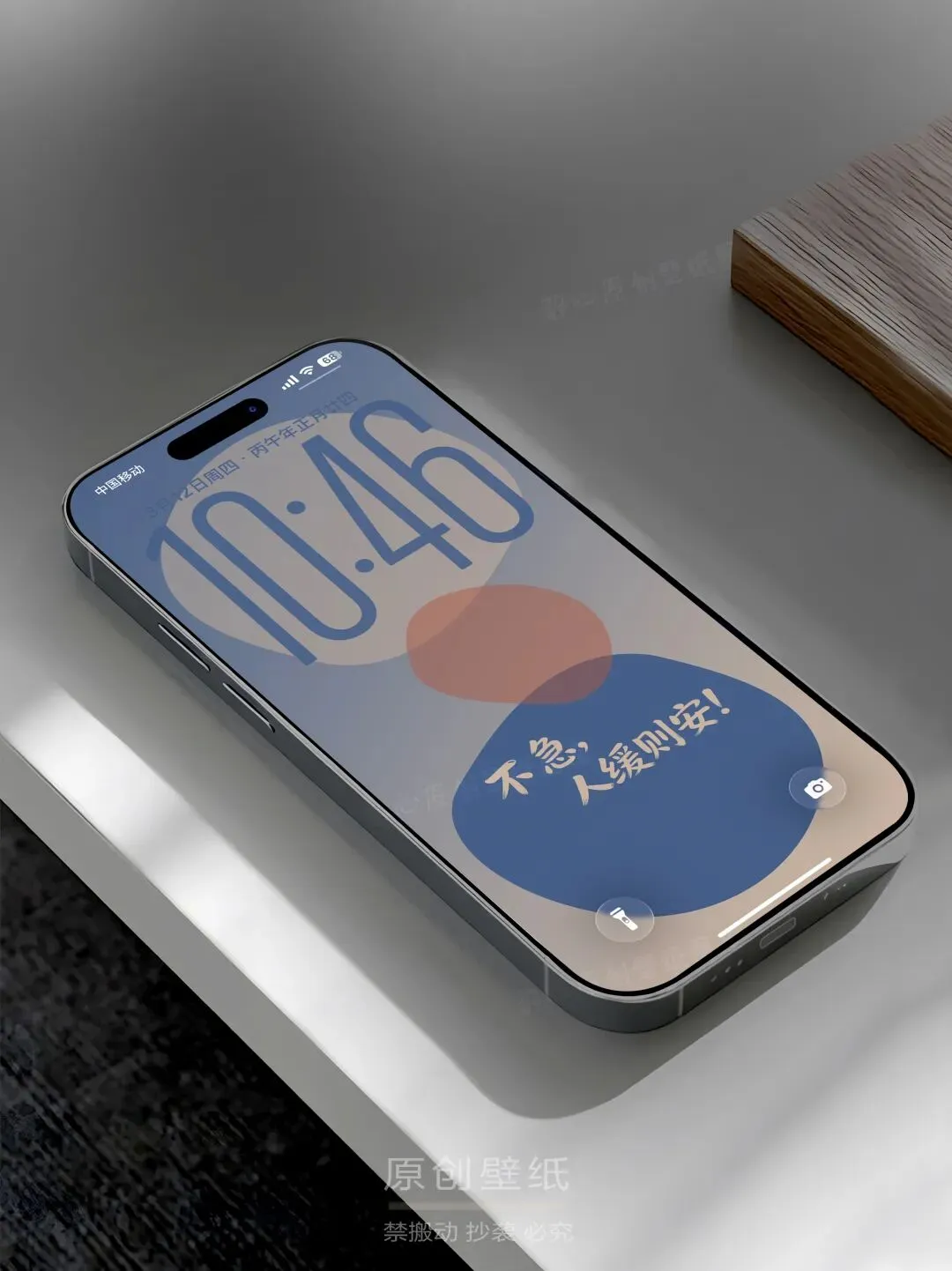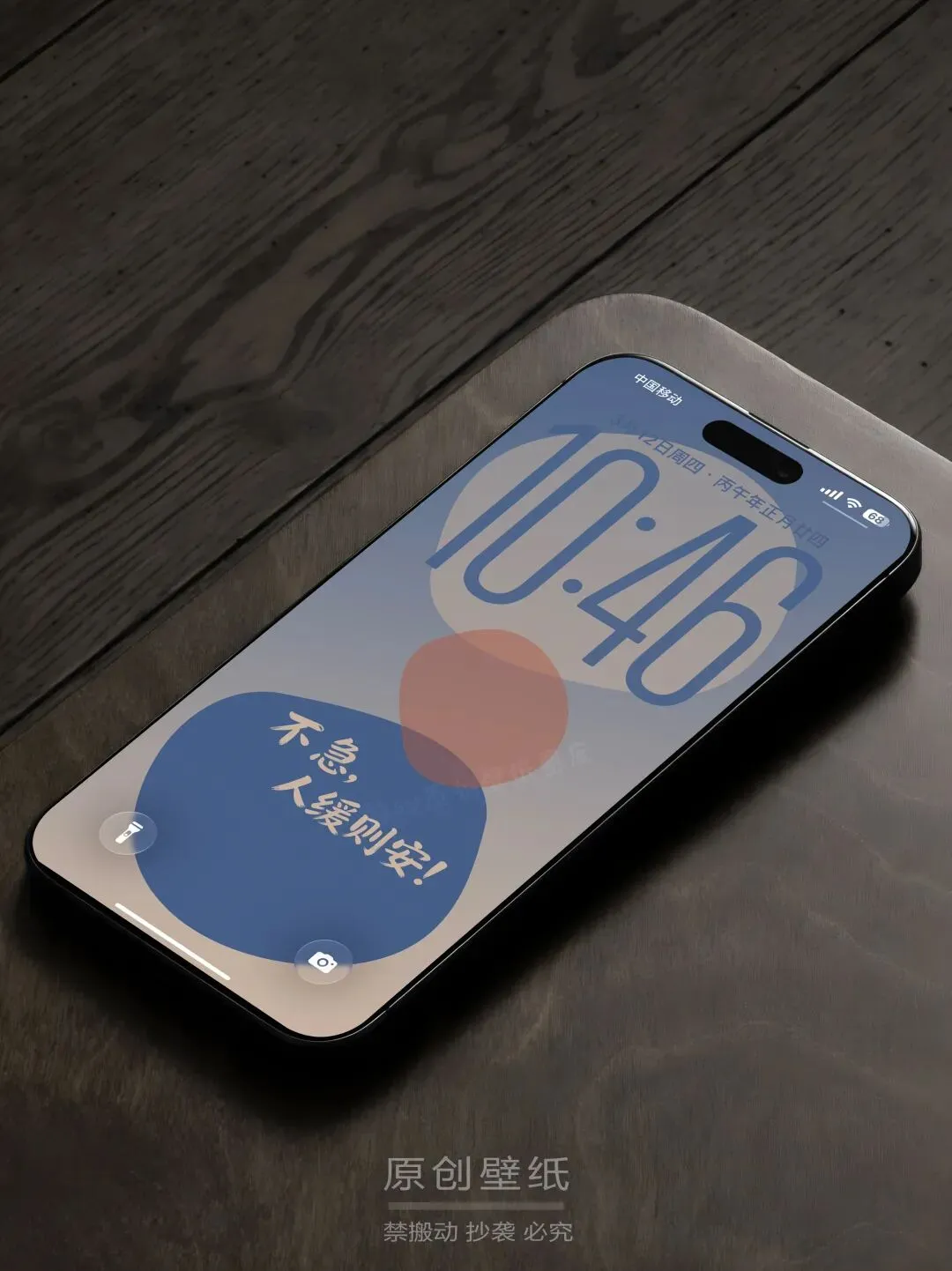 不急 人缓则安 ios26苹果金蓝拼色手机壁纸
