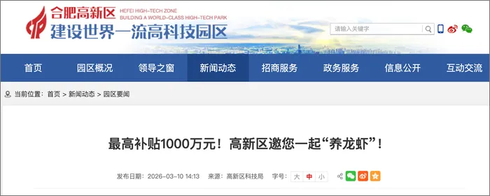 另一方面是各地官方也加入宣传竞赛,这始于深圳和无锡,随后迅速扩展到江苏、安徽等多个省市的区县级政府,形成了激烈的政策竞速,各地最高支持上百万至千万。合肥还推出“算力券”、“语料券”。深圳龙岗鼓励推广OpenClaw及一人公司(OPC)创业,推出“龙虾十条”。
