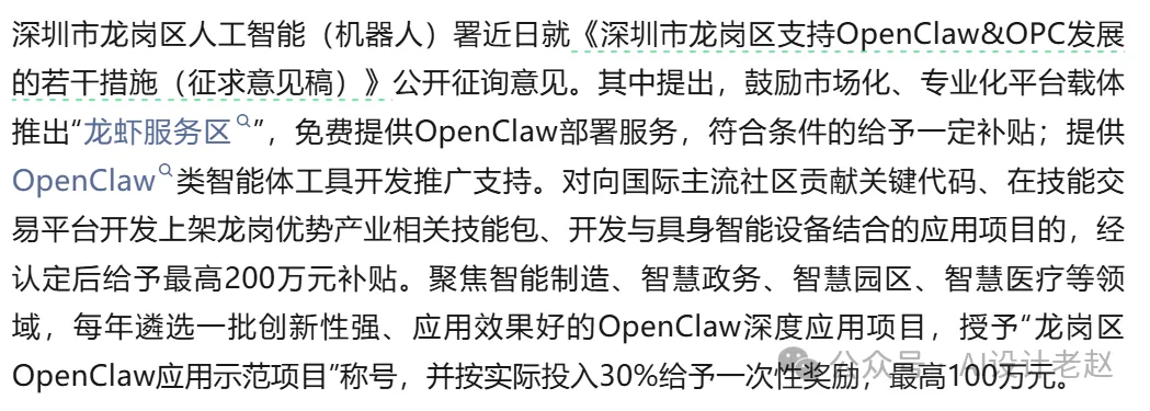 百度、阿里云、字节跳动,现在全都在发疯一样地抢着做云端版、一键部署版。深圳甚至刚刚发布了全国首个AI Agent补贴征求意见稿,直接推出了实体化的“龙虾服务区”。