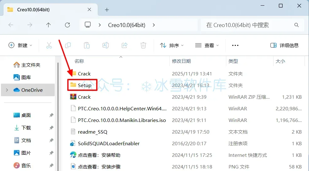 13.打开安装包解压后的【Creo10.0(64bit)】文件夹,双击打开【Setup】文件夹。