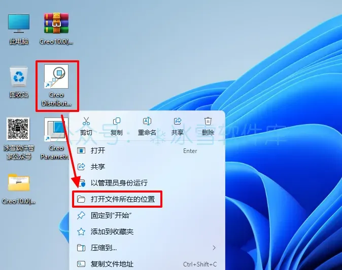 23.鼠标右击桌面【Creo Distribut……】图标选择【打开文件所在的位置】。