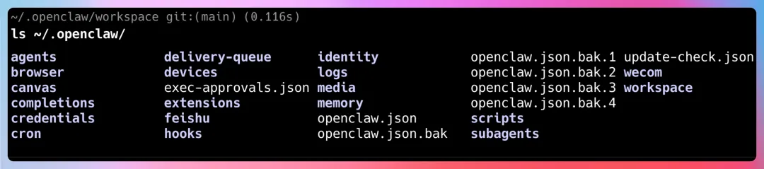 ~/.openclaw/ 是 OpenClaw 的“神经中枢”,里面存放着所有配置和状态。