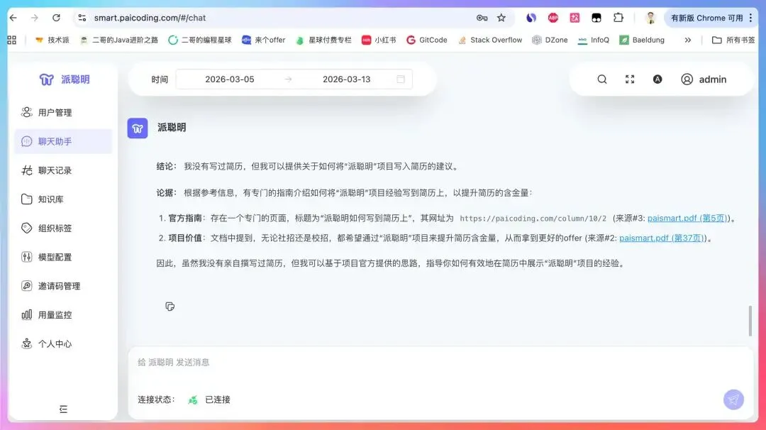 在开发群、运营群、会员群同时发送:派聪明 v2.0 今天上线了,新增了 AI 面试助手功能,大家快去体验!