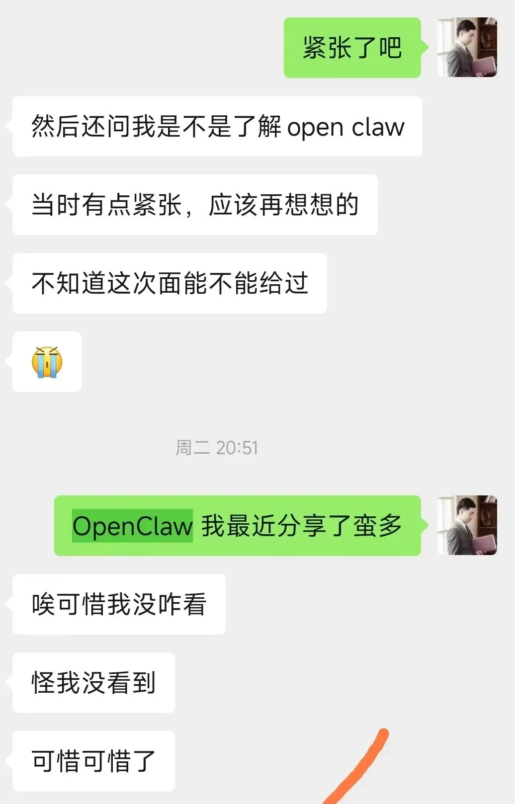 不瞒大家说,有小伙伴最近去面试,的确有遇到面试官问 OpenClaw 的,可惜他之前没有准备,后悔不已。