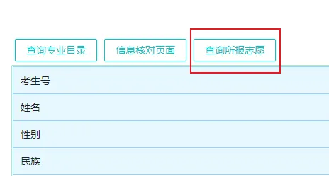 点击首页中的【查询所报志愿】,可以查看自己填报的志愿。