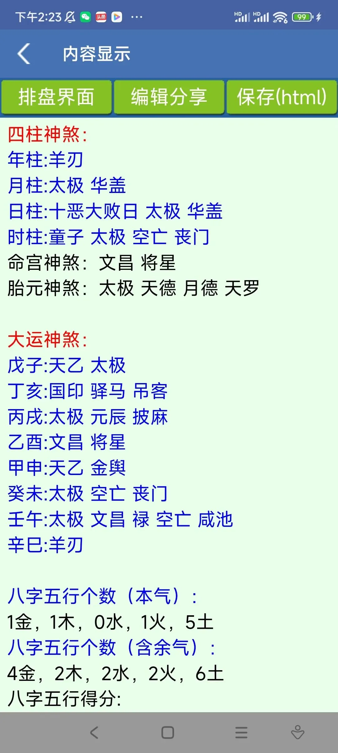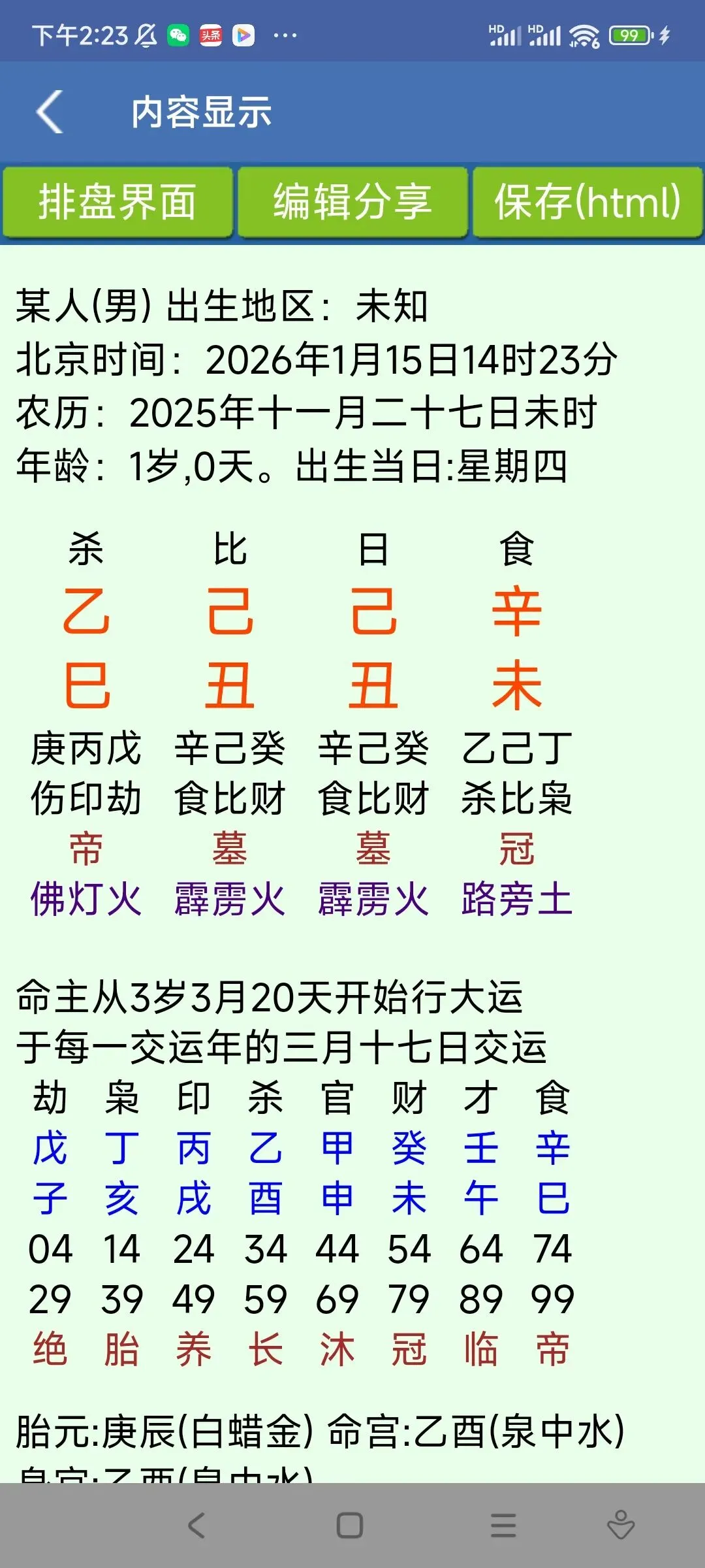 ①.排出八字、大运,找出神煞、胎 元、命宫、岁运并临等信息。