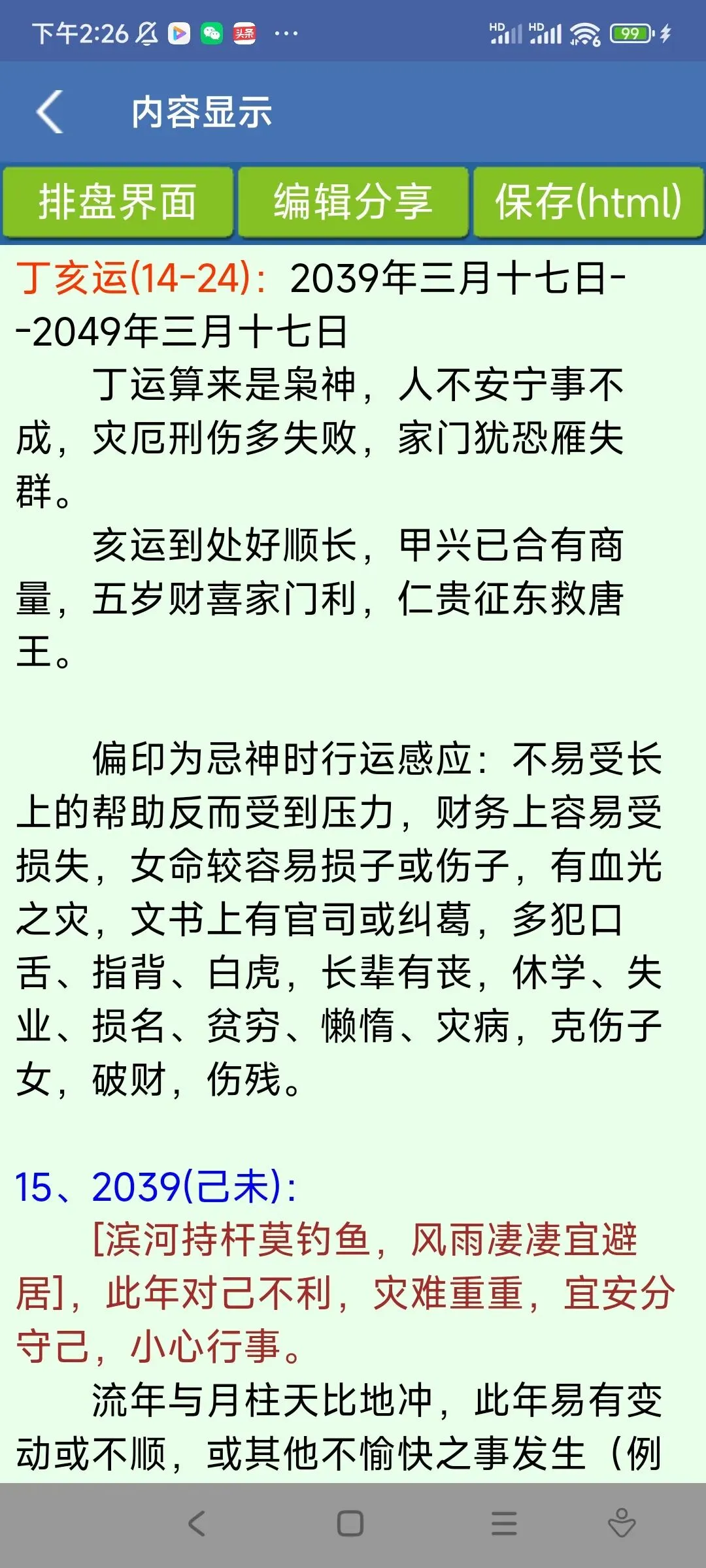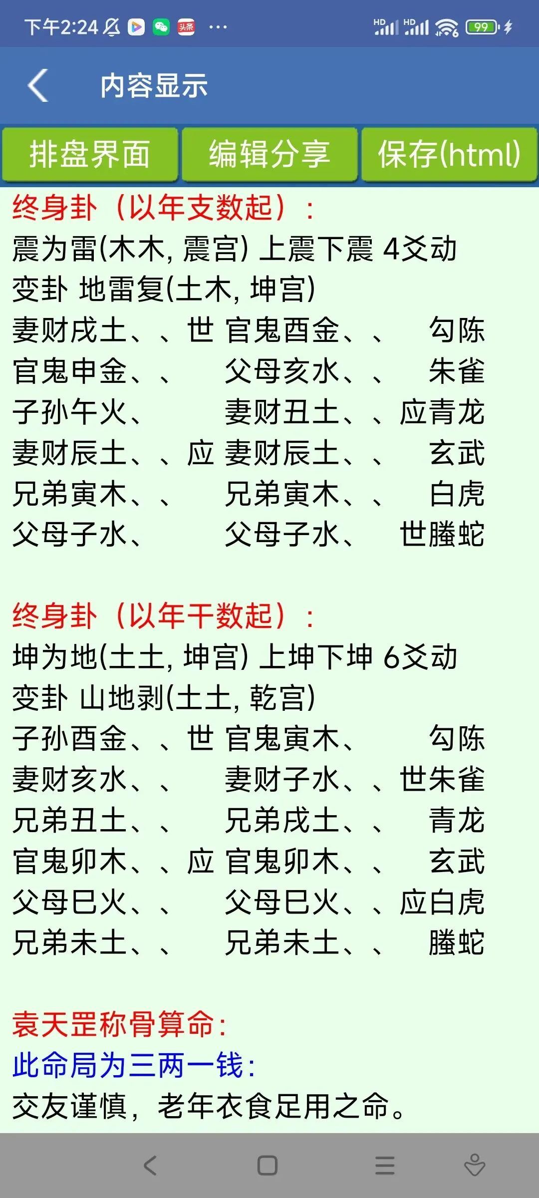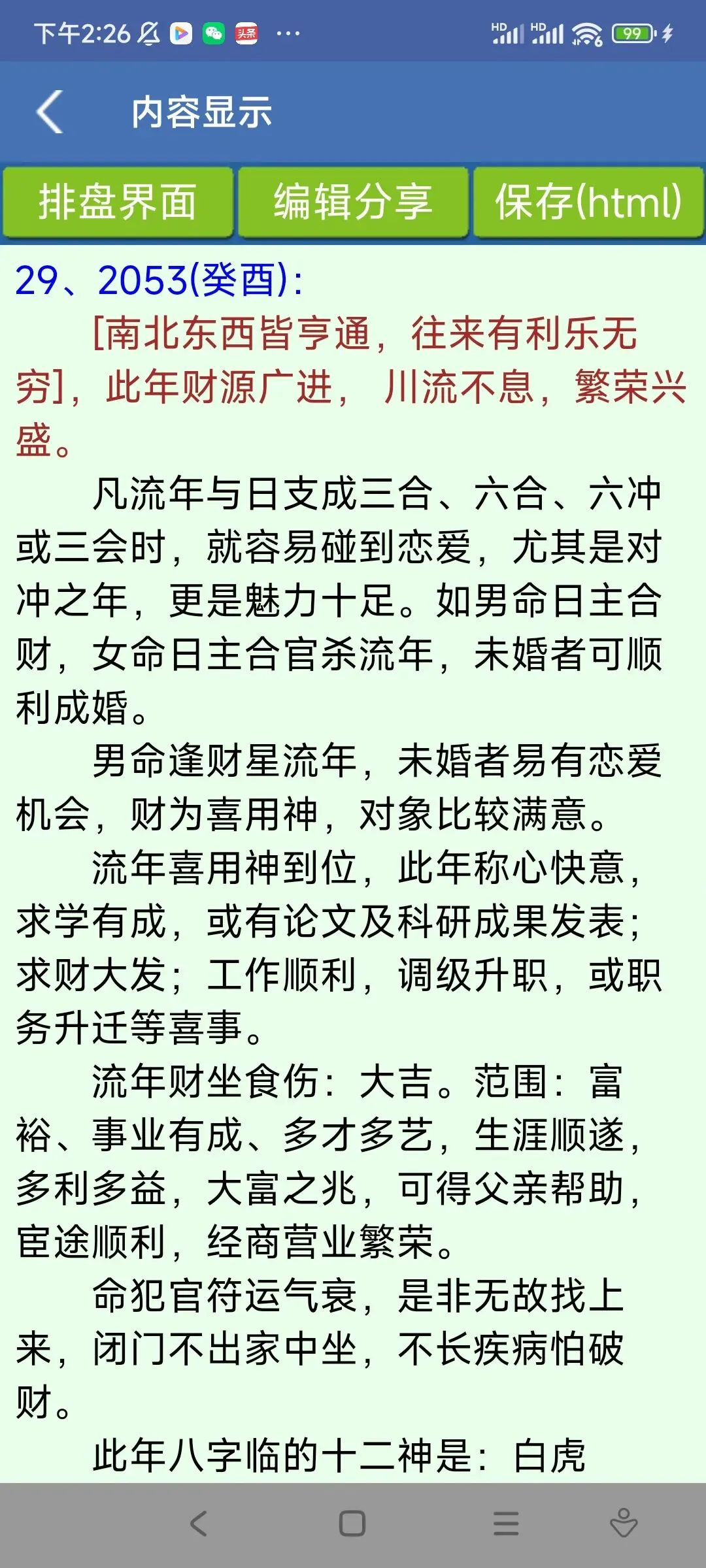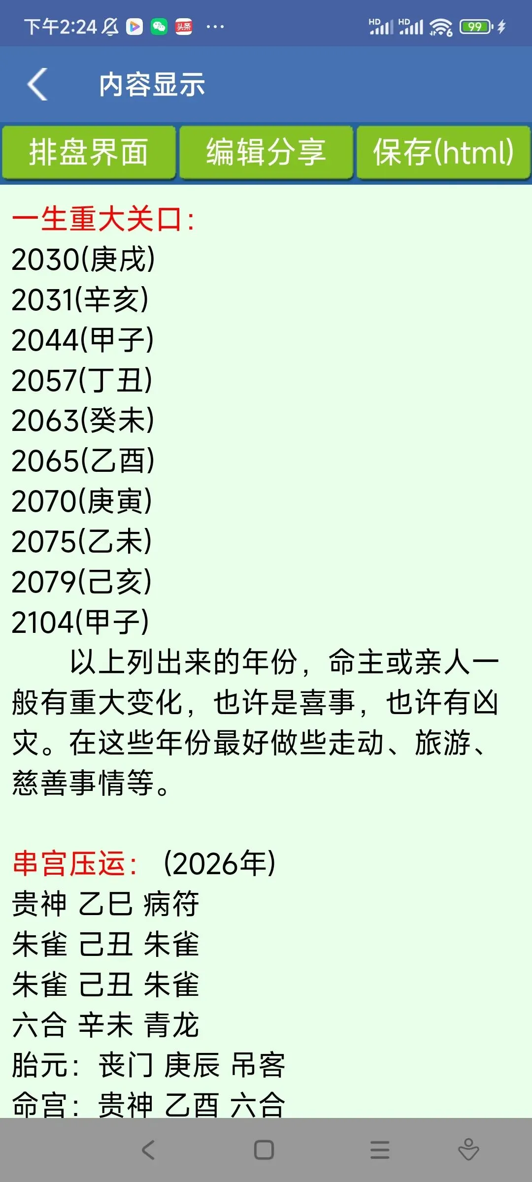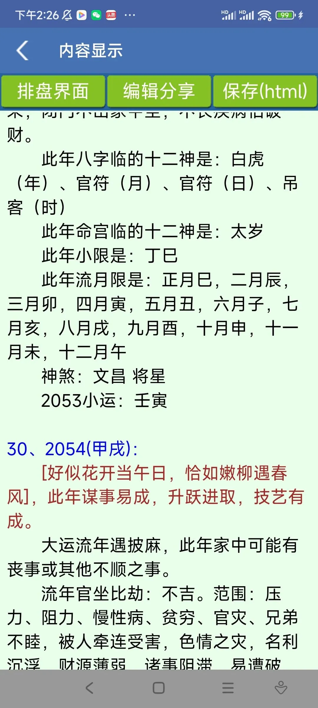 ③.还有:小运、终身卦、后天补救、穷通宝鉴、流年变化、称骨论命、流年神煞、重大关口、大运流年干支、串宫压运、性格、婚姻、兄弟姐妹、子女、财运、功名事业、健康状况、祖业父母。