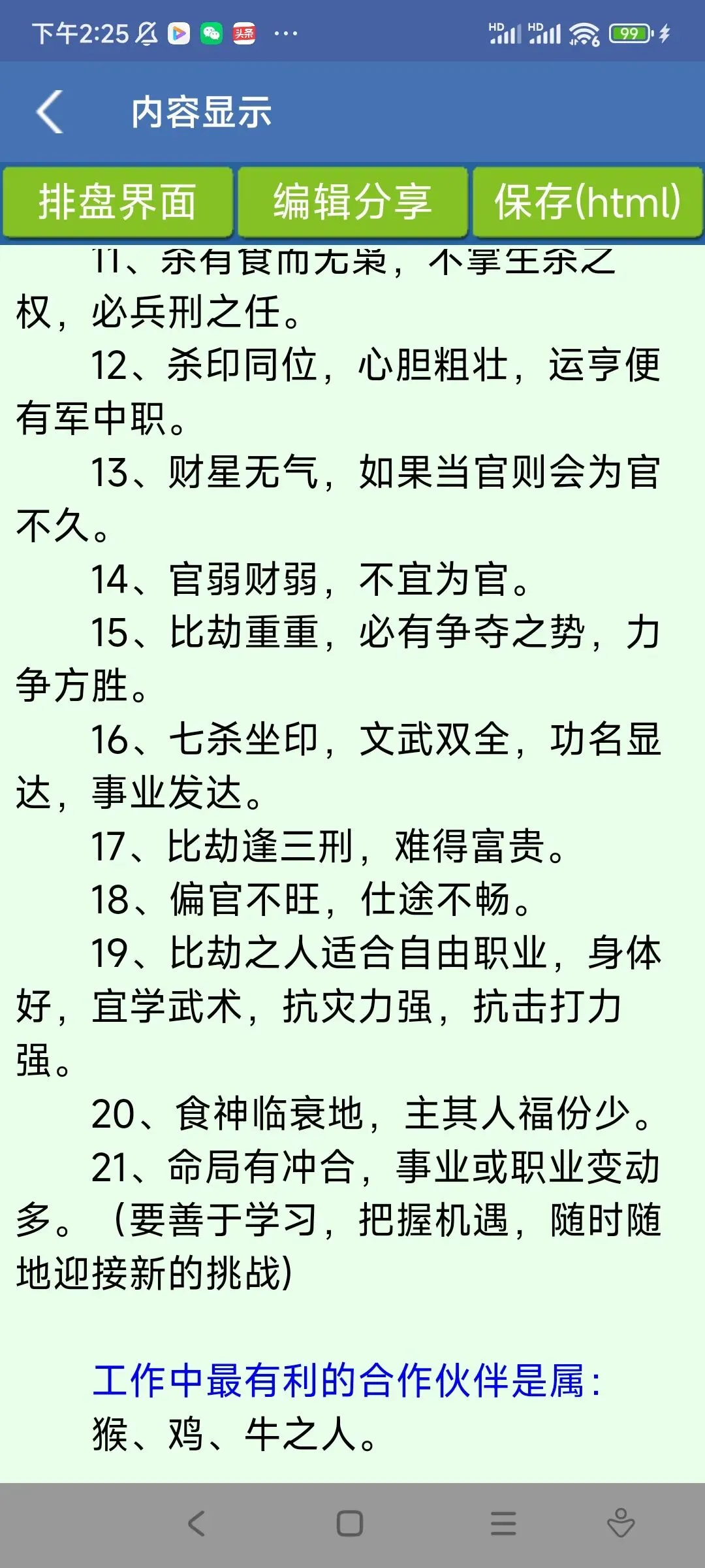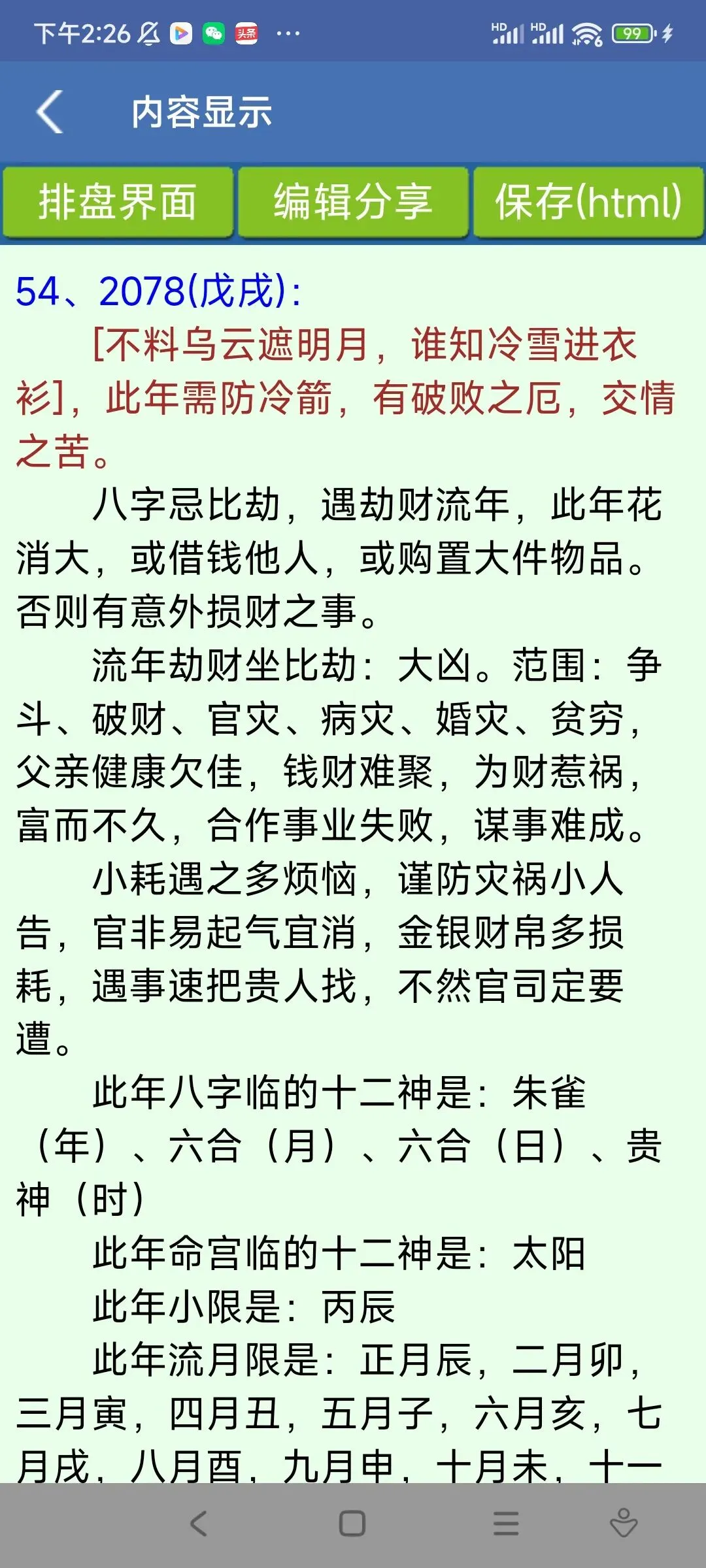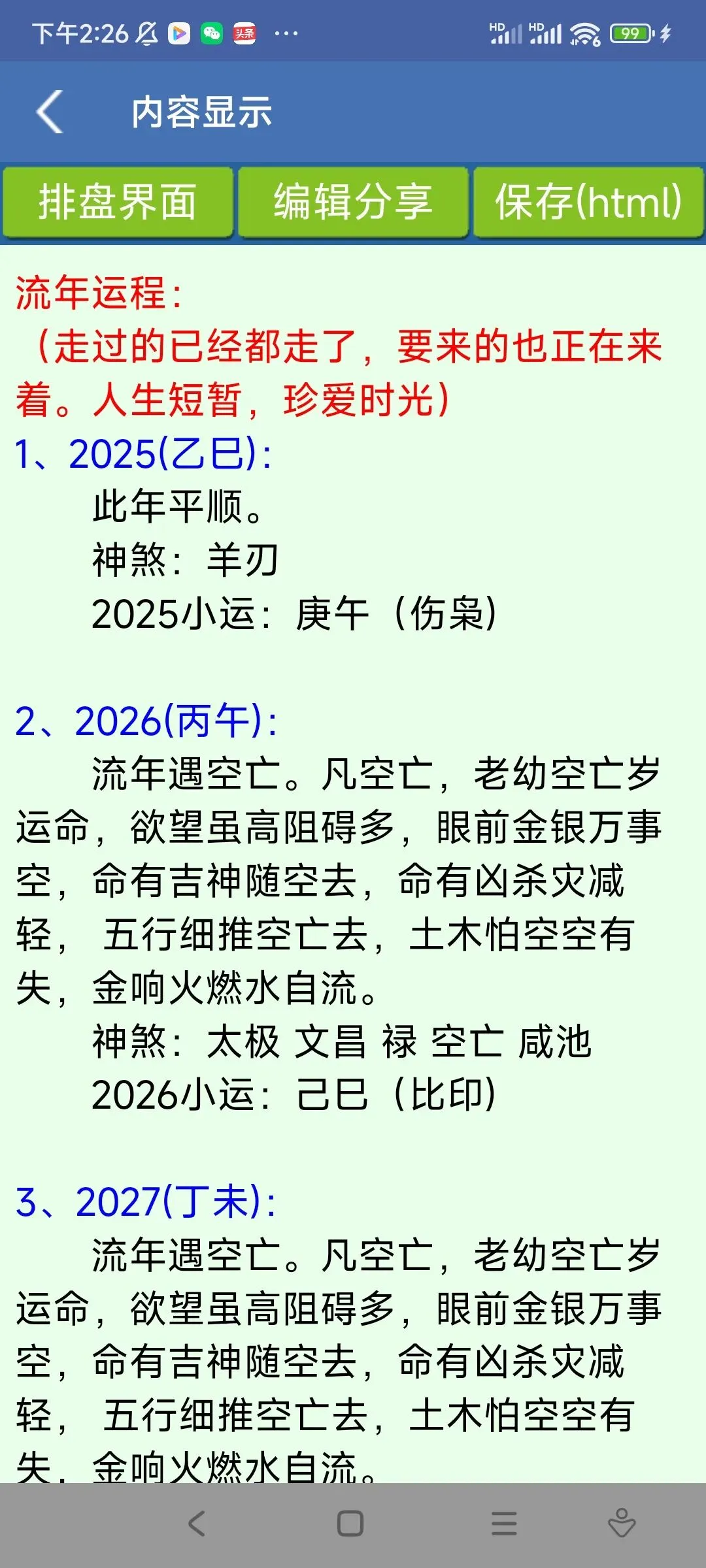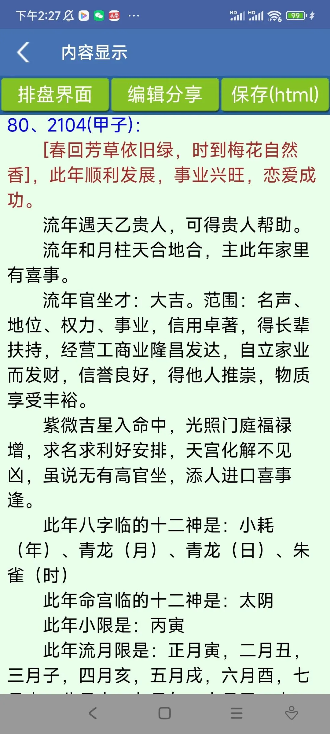 ③.还有:小运、终身卦、后天补救、穷通宝鉴、流年变化、称骨论命、流年神煞、重大关口、大运流年干支、串宫压运、性格、婚姻、兄弟姐妹、子女、财运、功名事业、健康状况、祖业父母。