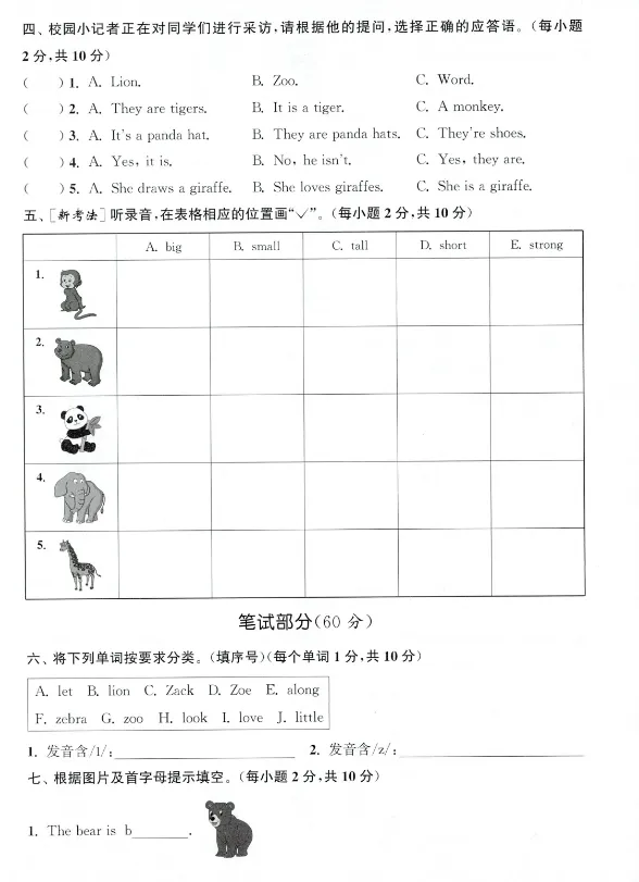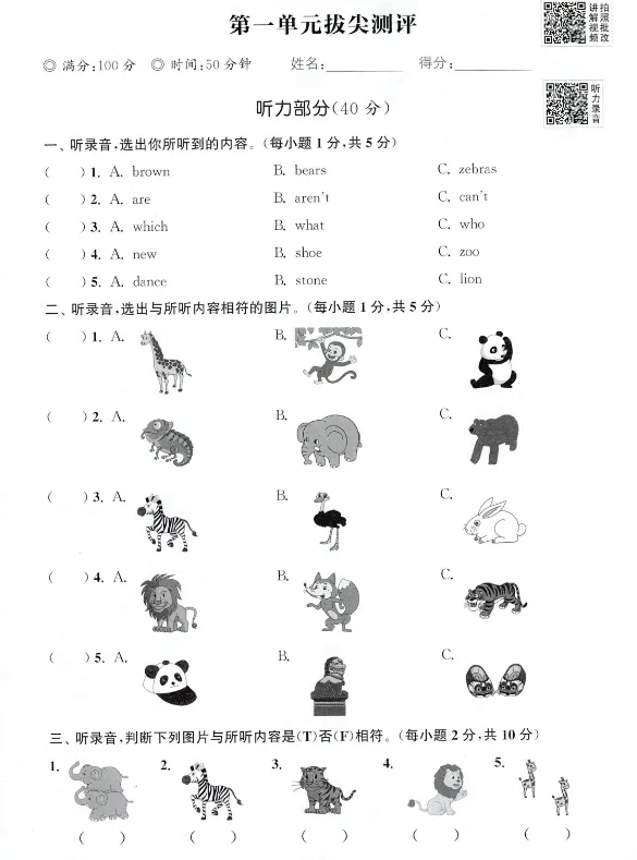 三下外研版英语第一单元测评卷【可下载电子版】