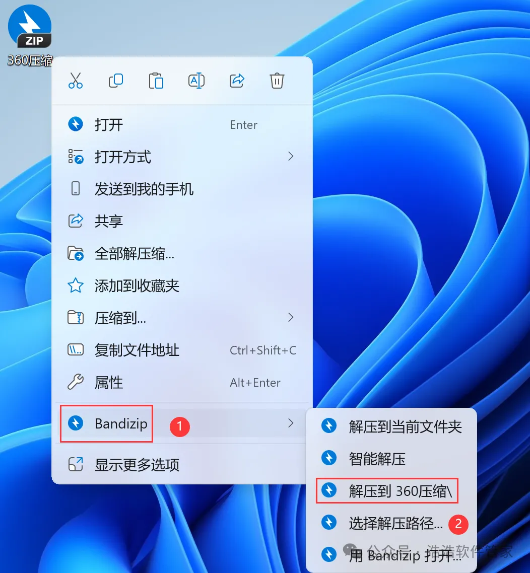 1、下载360压缩软件安装包到电脑上,右键选择【解压到360压缩\】