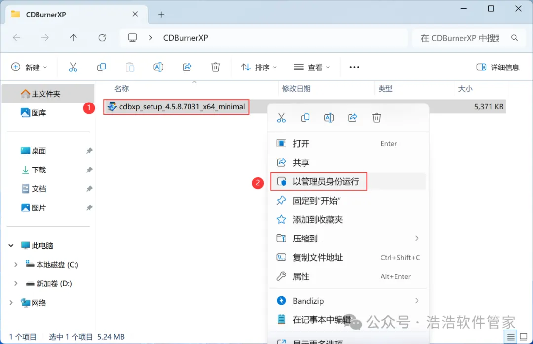3、找到【CDBurnerXP】应用程序,右键选择【以管理员身份运行】它