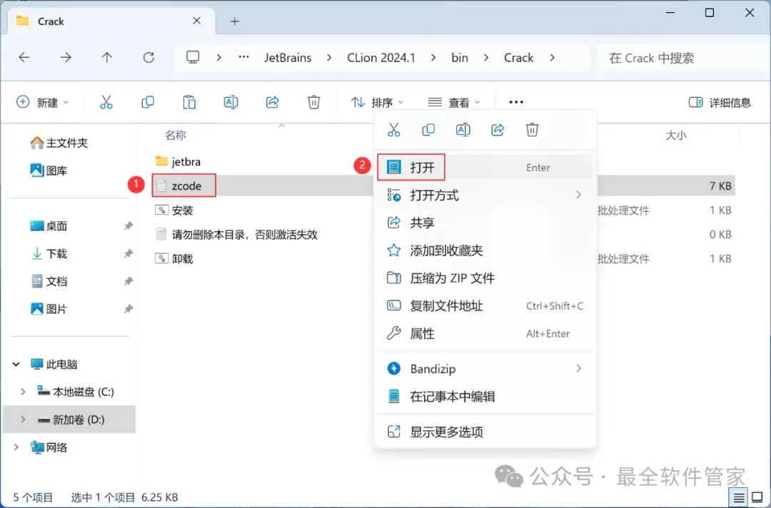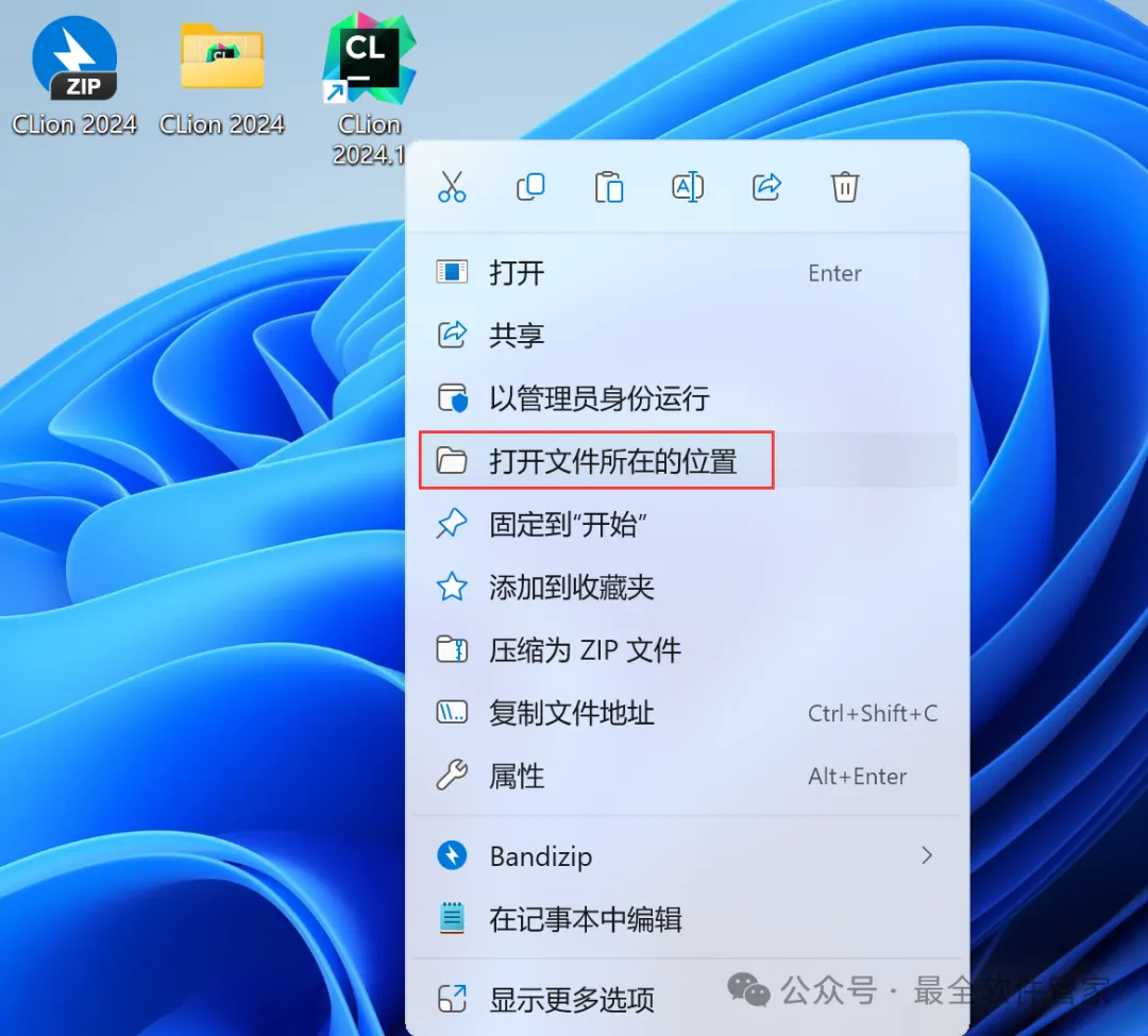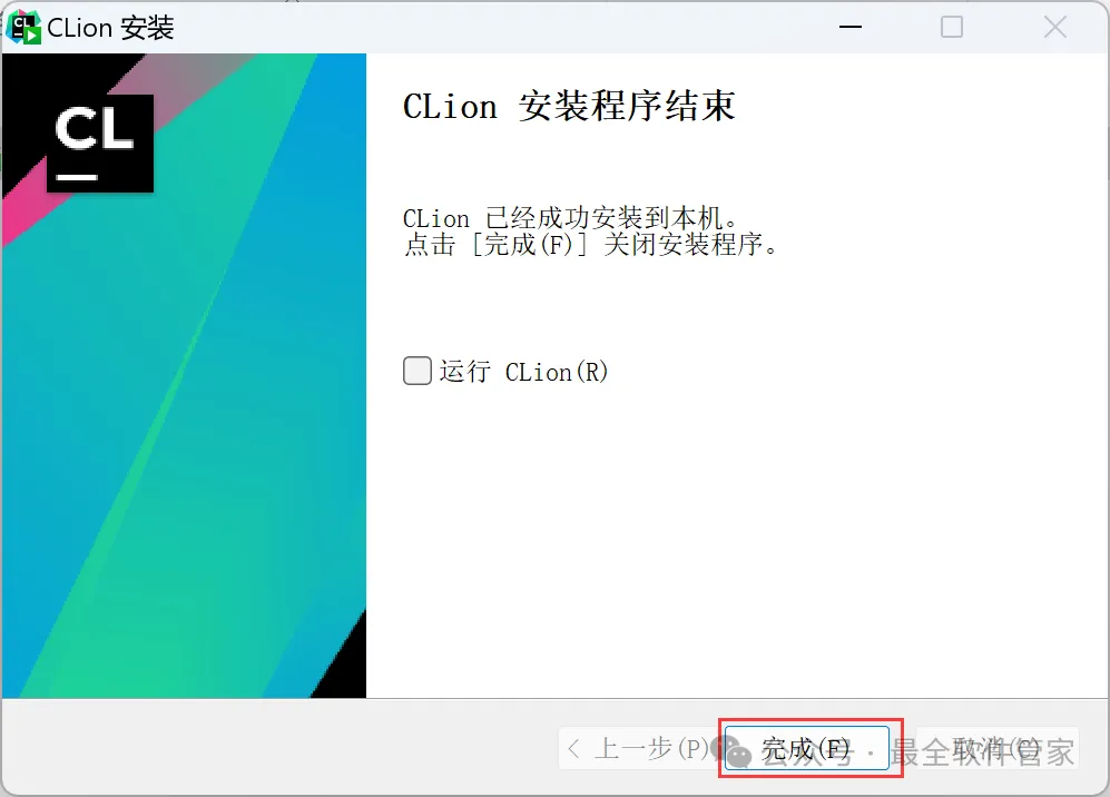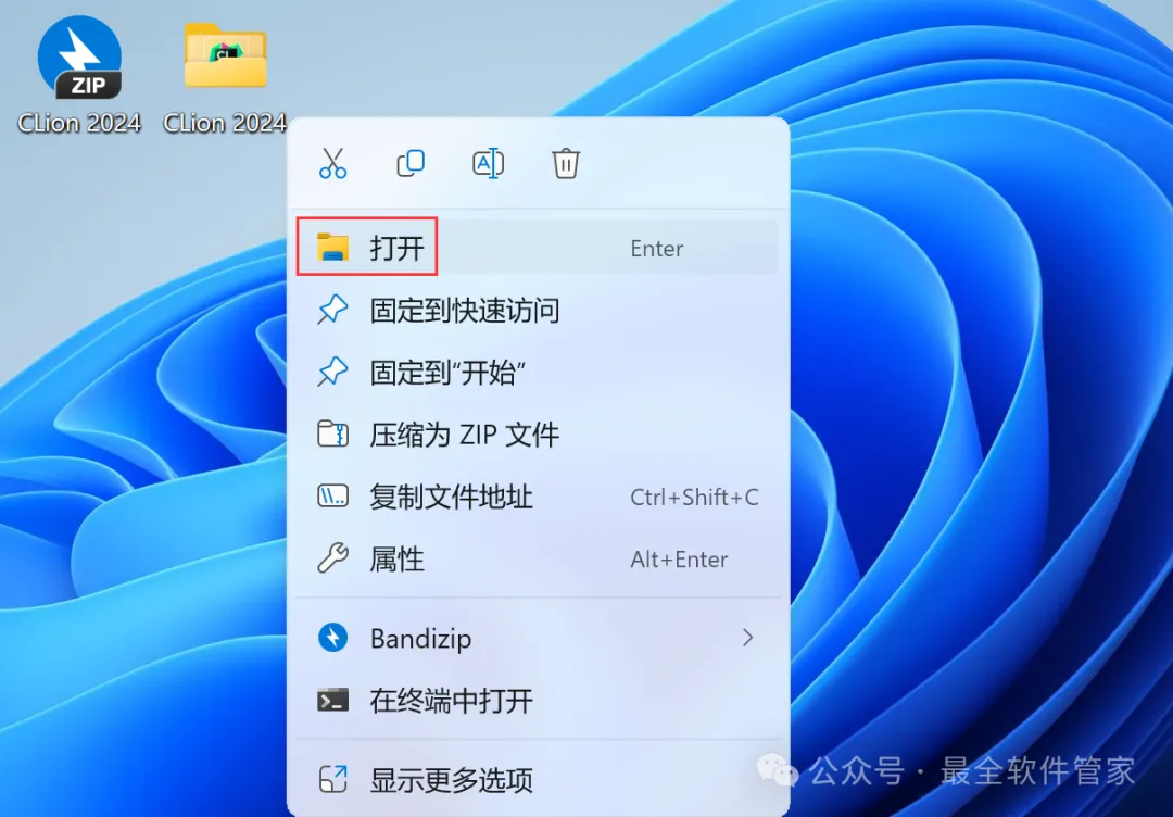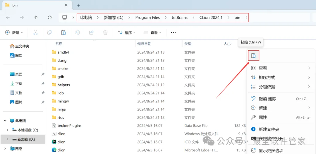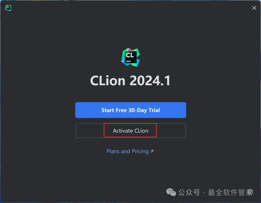 [不限速下载]:免费获取百度网盘不限速下载工具。公众号内回复:不限速[注意事项]:安装前请关闭网络、杀毒软件和防火墙,否则易安装失败。公众号内回复:1[解压软件]:小编用的解压软件是Bandizip,获取Bandizip软件安装包。公众号内回复:21、下载CLion 2024软件安装包到电脑上,右键选择【解压到CLion 2024\】3、找到【CLion-2024.1】应用程序,右键选择【以管理员身份运行】它5、软件默认安装在C盘,可自定义更改软件安装位置,这里小编选择安装在D盘;点击【下一步】6、勾选【创建Clion桌面快捷方式】,再点击【下一步】10、回到CLion 2024文件夹,找到【Crack】文件夹,右键点击【复制按钮】11、回到桌面,右键桌面上的【CLion 2024.1软件图标】,点击【打开文件所在的位置】13、找到粘贴的【Crack】文件夹,右键【打开】它18、回到桌面,右键桌面上的【CLion 2024软件图标】,点击【打开】22、回到Crack文件夹,找到【zcode】文档,右键【打开】它24、回到CLion 2024软件界面,点击【Activation code】,再右键的空白处,点击【Paste】28、以上就是CLion 2024软件安装的全过程,要是对你有帮助的话,请为小编点个赞!免责声明:软件资源均来源于网络,仅供用户交流学习与研究使用,版权归属原版权方所有,版权争议与本公众号无关,用户本人下载后不能用作商业或非法用途,否则后果均由用户承担责任;如果您访问和下载此文件,表示您同意只将此软件用于参考、学习而非其他用途,否则一切后果请您自行承担,请于下载后24小时内删除,不允许用于商业用途,否则法律问题自行承担。如果您喜欢该软件,请支持正版软件,购买注册,得到更好的正版服务。