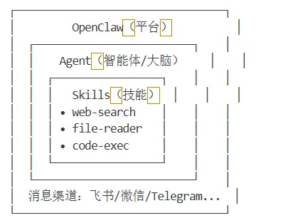 | | | OpenClaw 是 Agent 的**运行平台** |