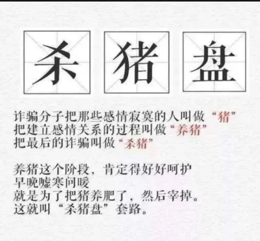 当有陌生人加你为好友时,一定要小心。诈骗分子往往先以甜言蜜语或者献殷勤等方式博取好感和信任,再向你推荐所谓“稳赚不赔、低成本高回报”的网络投资平台。当你越投越多时,就会把你拉黑。从网恋“一见钟情”开始,到参与网络赌博或投资诈骗结束,直到受害者倾家荡产甚至背负巨债,这就是“杀猪盘”诈骗。一旦发现被骗,请及时报警。