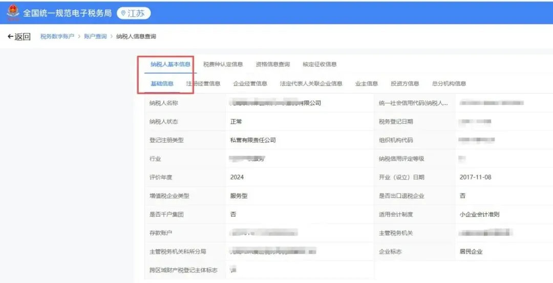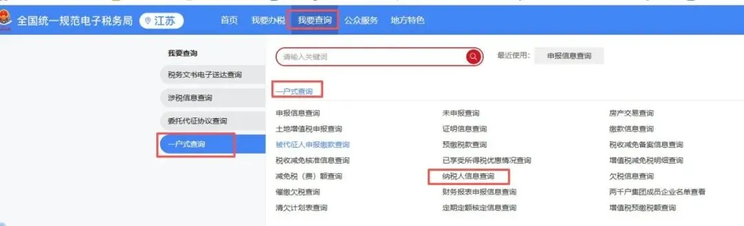 目前新成立公司费减备案需要提供的纳税人信息查询截图路径如下: