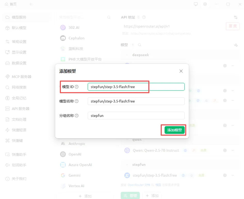 11.第一个框内输入【stepfun/step-3.5-flash:free】