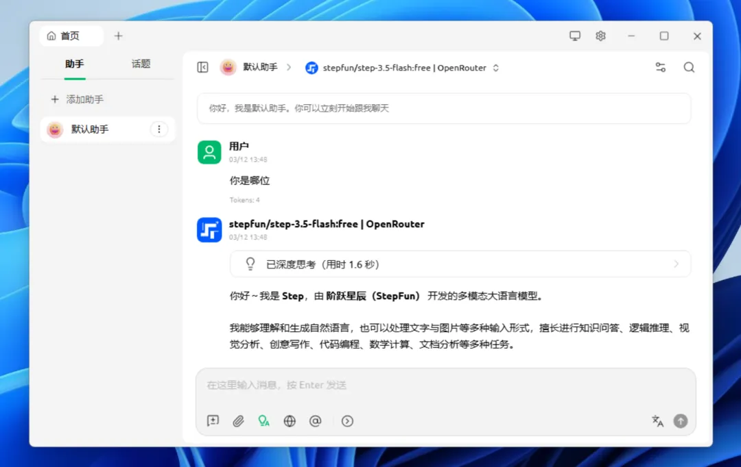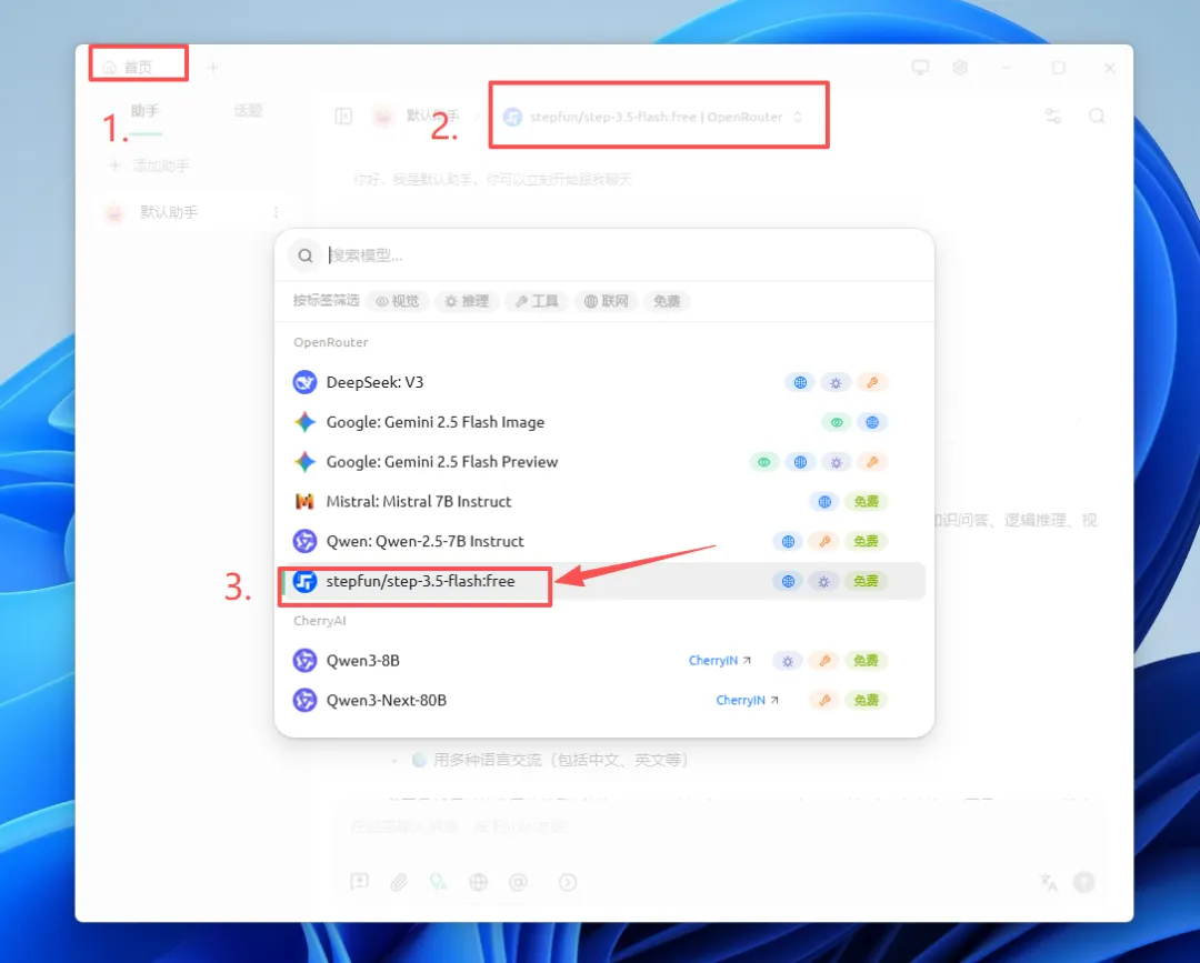 12.返回主页----然后选择stepfun/step-3.5-flash:free