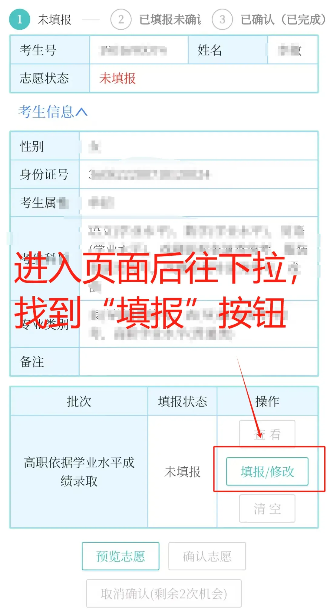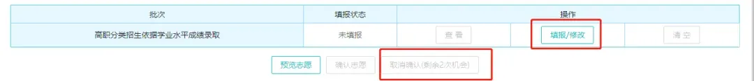 核对信息无误后,点击【填报/修改】,进入志愿填报页面。