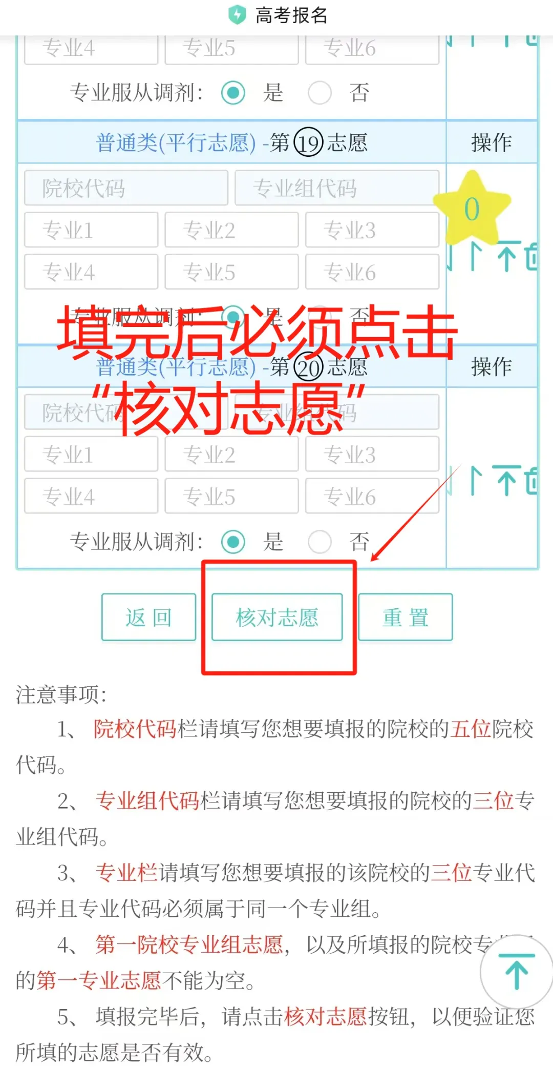 填院校代码、专业组代码和专业代码(注意:全部是填数字代码!)