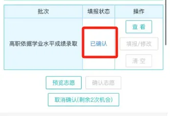 志愿状态必须是“已确认”