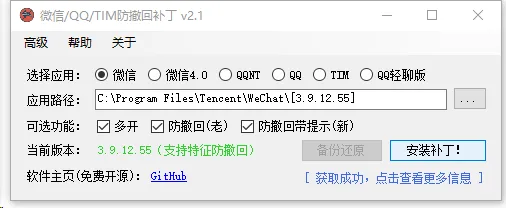 利用Windows系统自带的批处理功能,不修改微信任何文件。