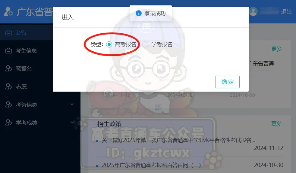 (记得是勾选“高考报名“)