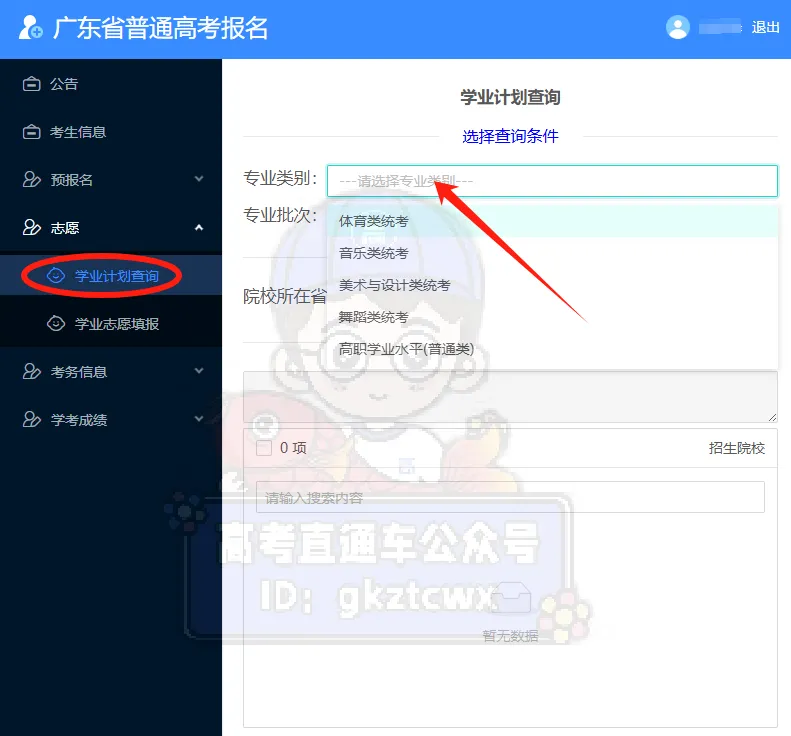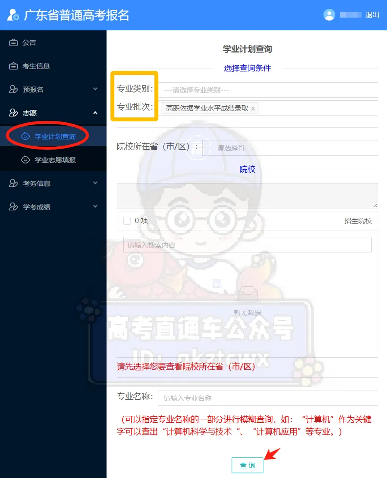 没有买书的同学,如果需要查询招生院校和计划,可以点击【志愿】-【学业计划查询】,选择对应专业类别和批次,进入查询即可。