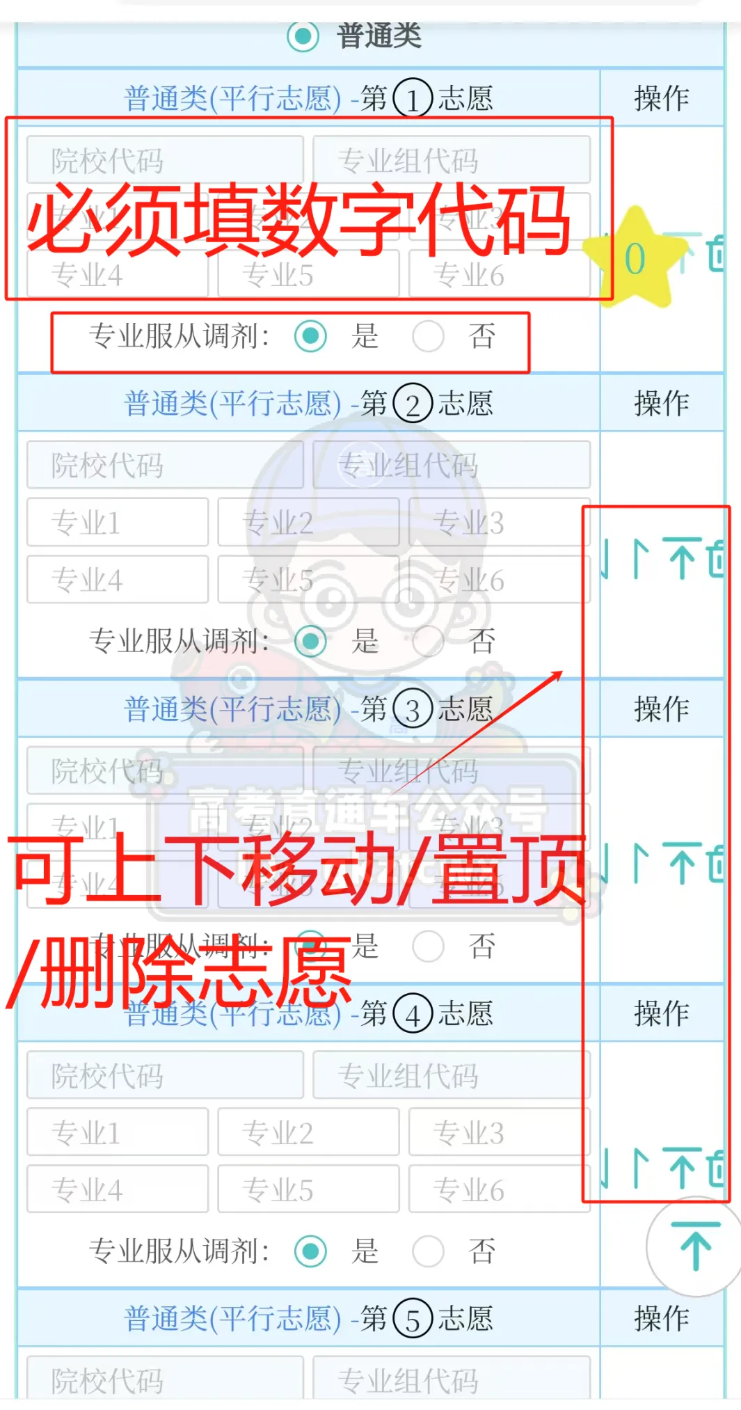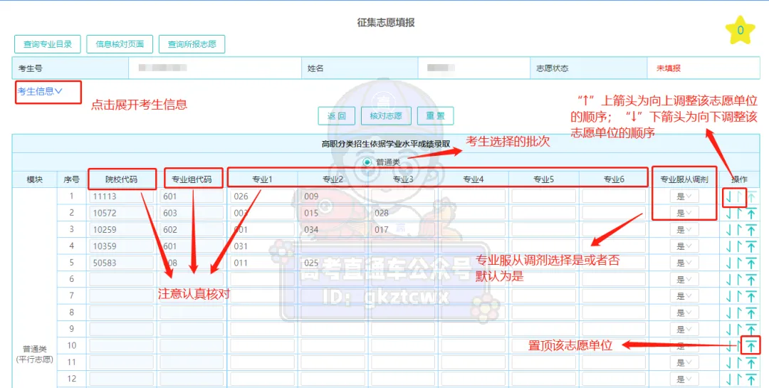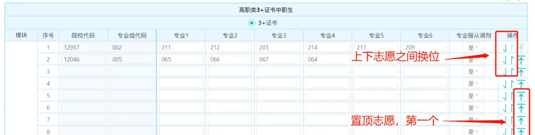 (可利用右手边的箭头上下调整志愿位置)