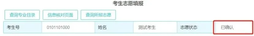 志愿状态必须是“已确认”