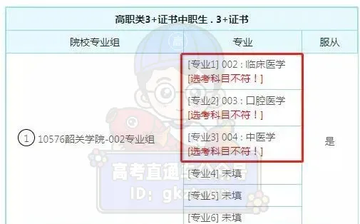 需要注意的是,现在志愿是默认服从的,表的右边可以调整志愿之间的位置。