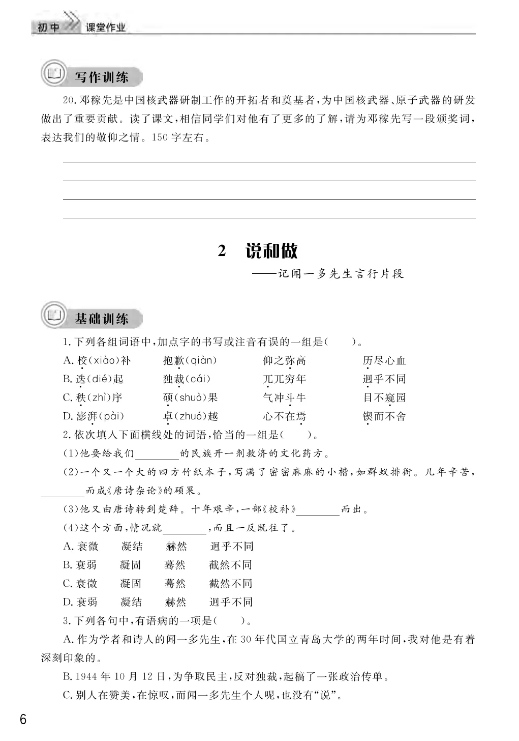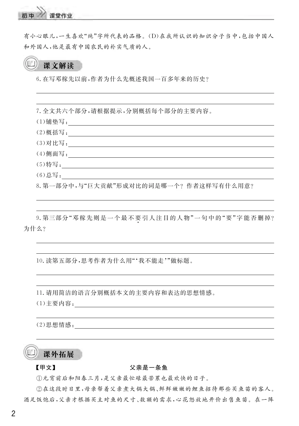 初中全科课堂作业