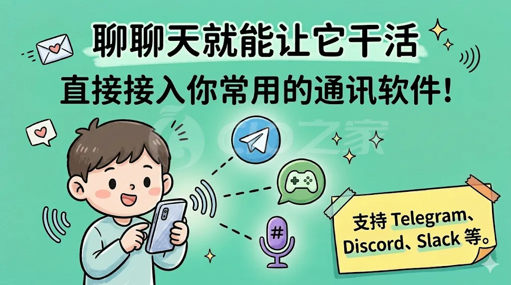 通过极简的内核和代理编程(Agentic Programming)理念,OpenClaw 可以直接接入你常用的通讯软件(如 Telegram、Discord、WhatsApp、Slack 等)并接受自然语言指令。它不仅擅长读写代码、执行 Bash 脚本,还能通过模型驱动自我迭代和编写工具,甚至借助扩展自动操控浏览器完成复杂的工作流。