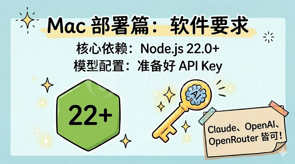 核心依赖:Node.js 22.0 或更高版本。