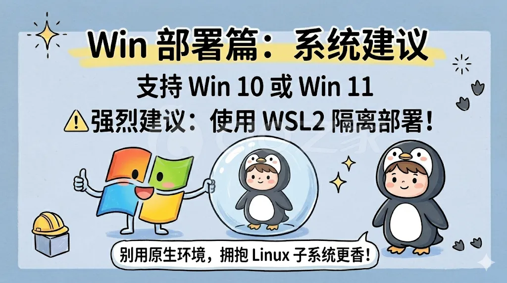 操作系统:Windows 10 或 Windows 11。强烈建议通过 WSL2(Windows Subsystem for Linux)进行隔离部署,而非直接使用原生 Windows 环境。