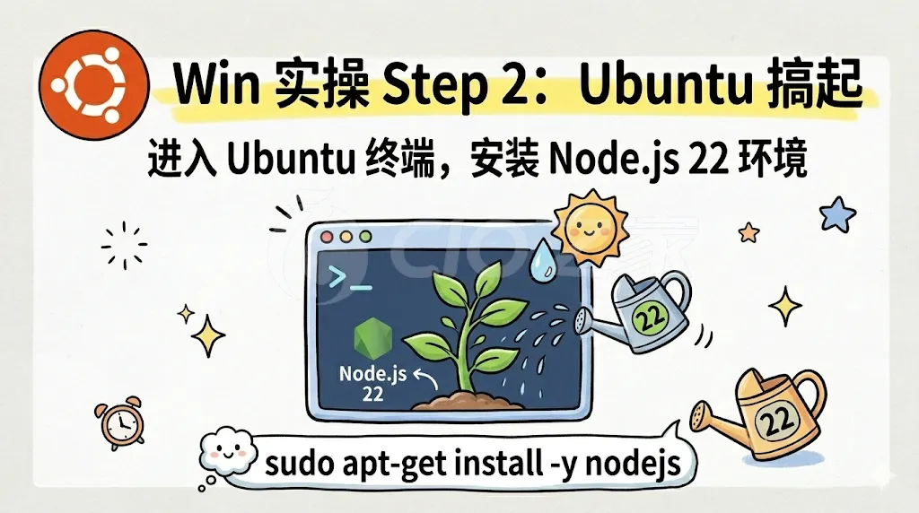 sudo apt-get install -y nodejs。全局安装 OpenClaw:运行