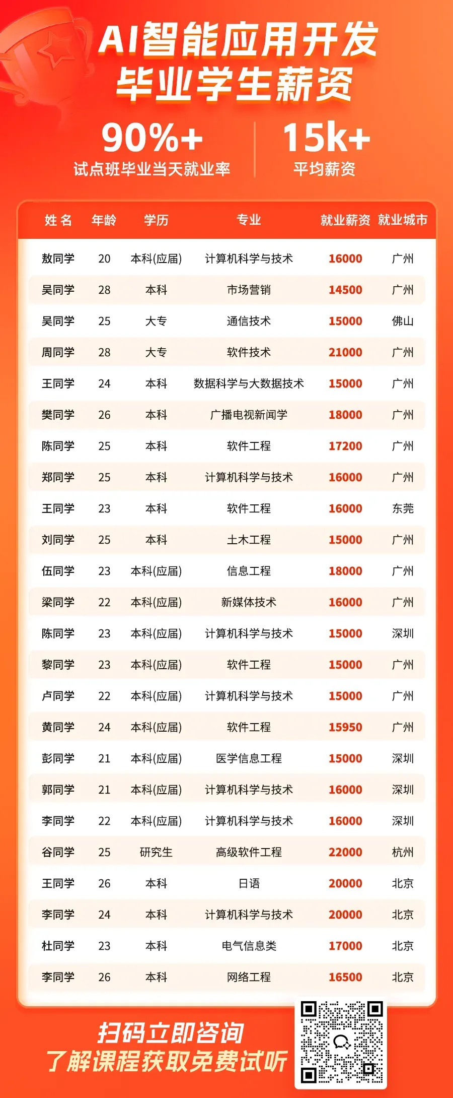 · 班级平均月薪稳稳超过15k+
