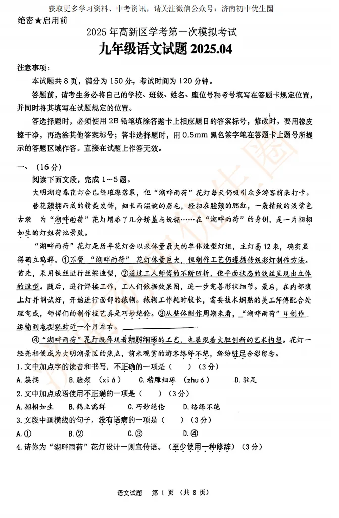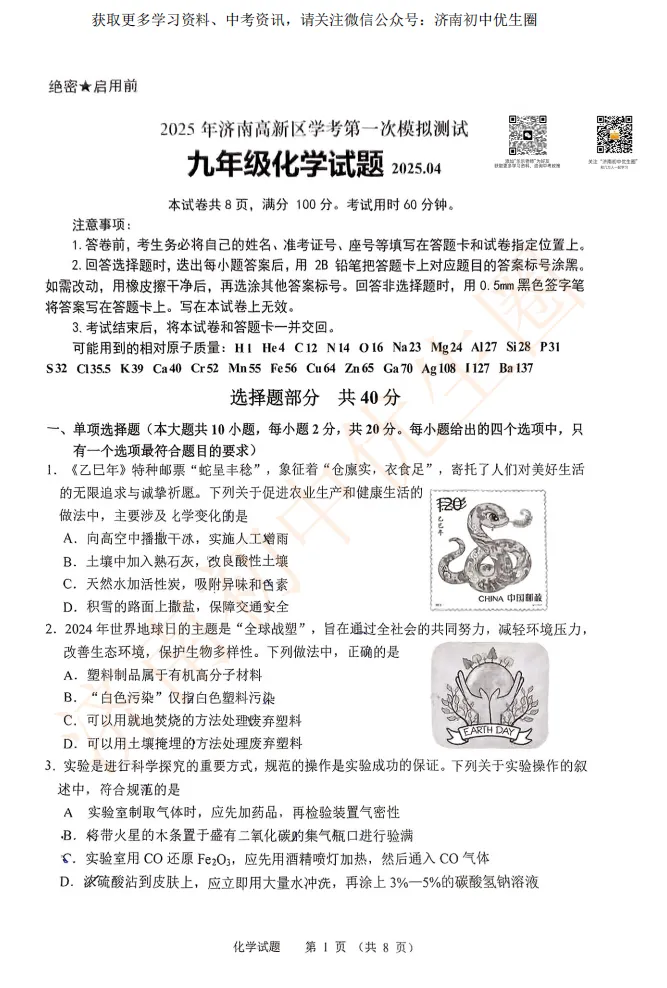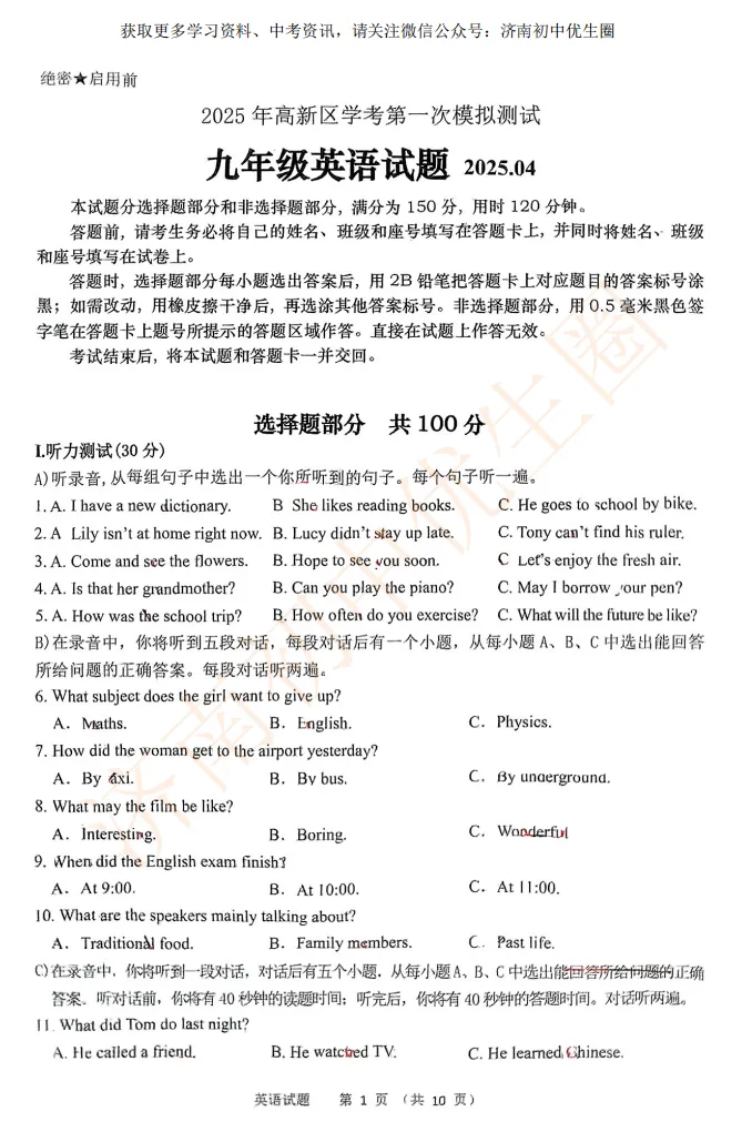 今天小初老师给大家整理25年高新区一模真题,初三的孩子开学后马上就要面临一模考试,大家可以利用假期提前准备。PDF高清版,可以扫描下方二维码免费获取!