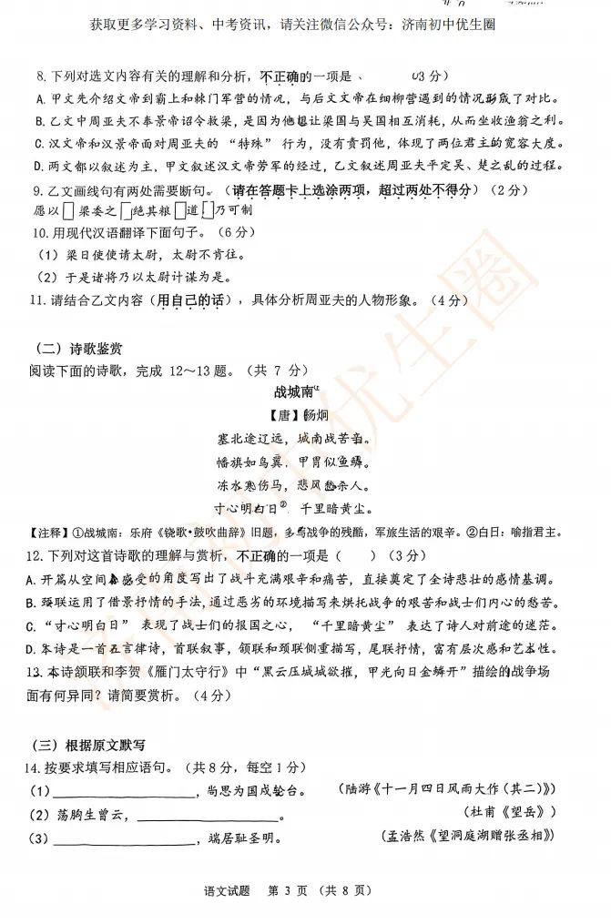 语文真题展示