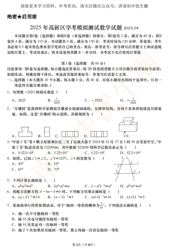 2025年高新区一模真题