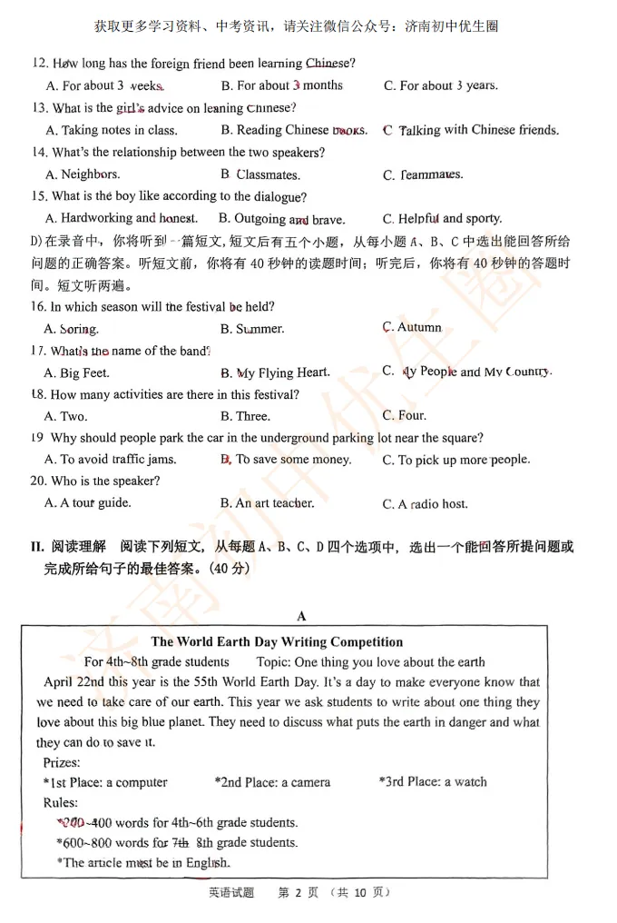 济南市各区期末考试正在进行中,关注公众号:济南初中优生圈,扫码免费领取初一至初三期末最新真题