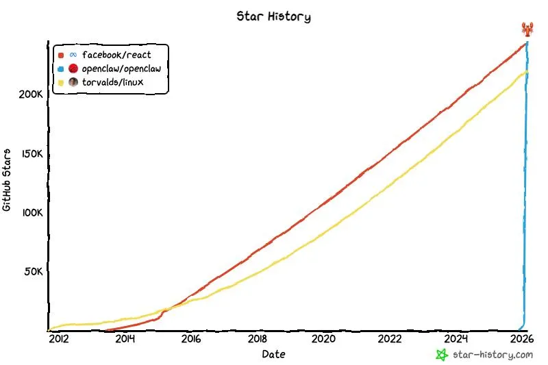所以只过了两个月,OpenClaw 就在 Github 上收货了 25 万个 Star,成为了史上最受欢迎的开源项目。