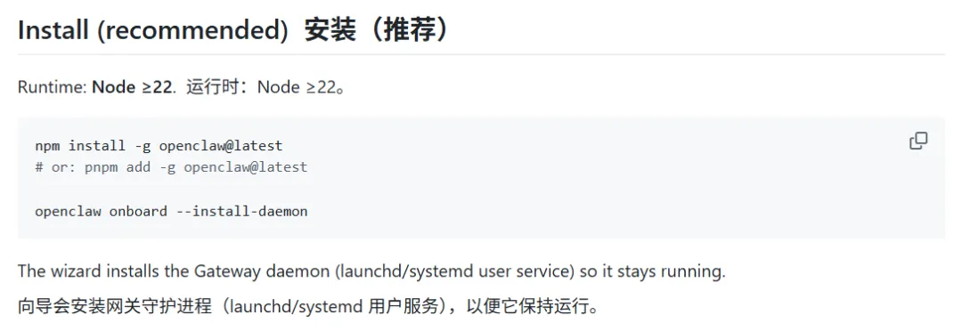 看起来只要在命令行里敲两行命令就能装好小龙虾,很简单对吧?