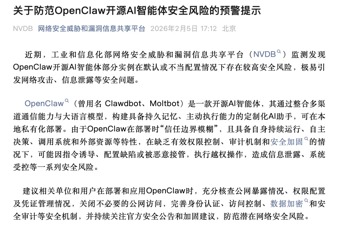 甚至就连工信部都发布了 OpenClaw 的安全风险提示。。。