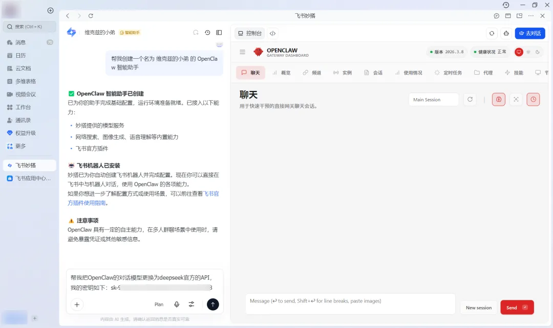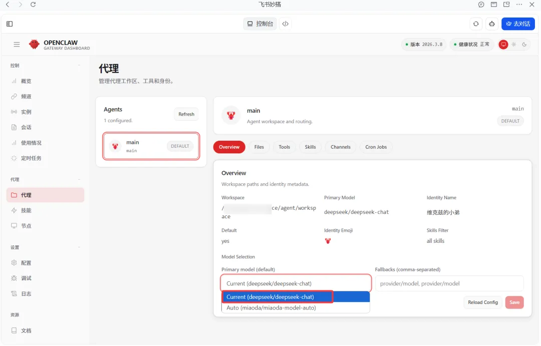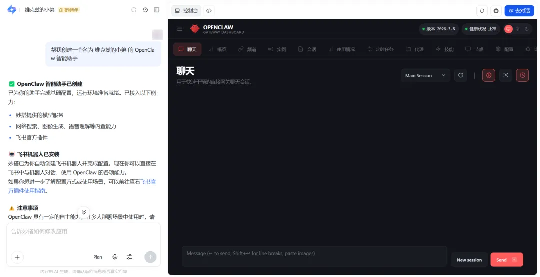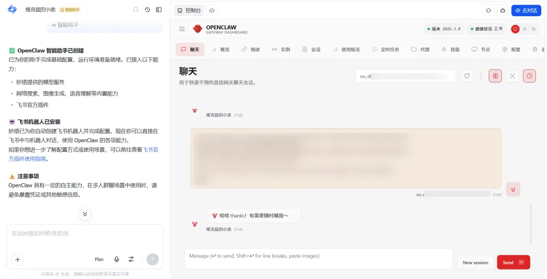 回到妙搭,马上就可以看到OpenClaw的控制面板。