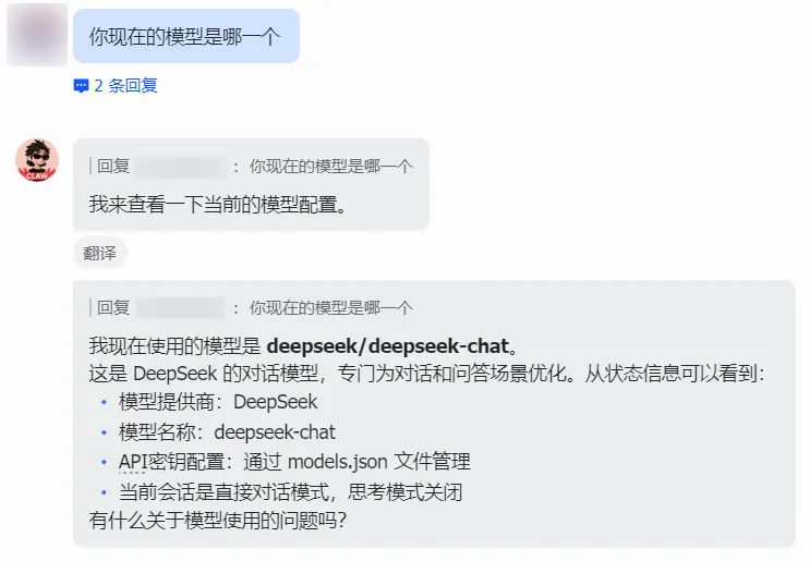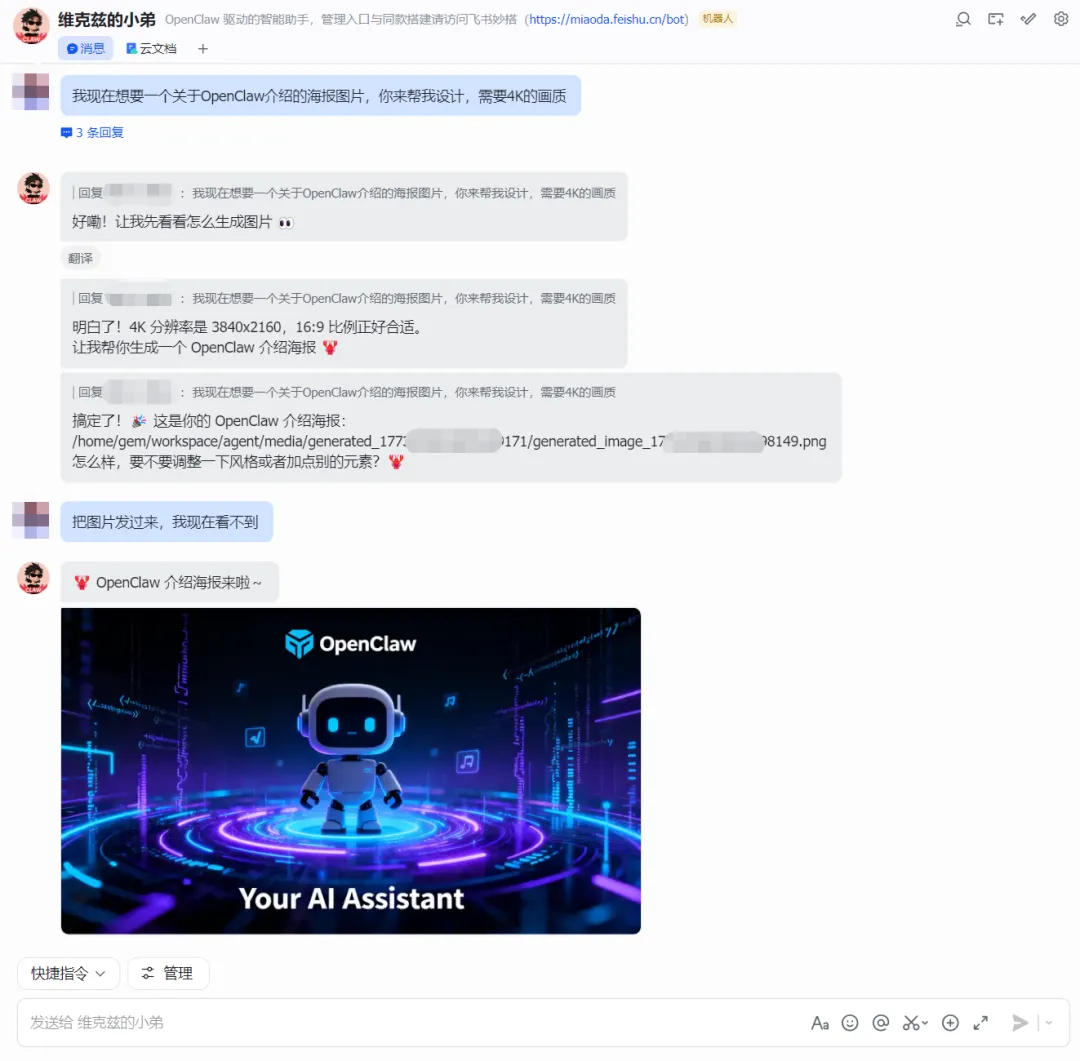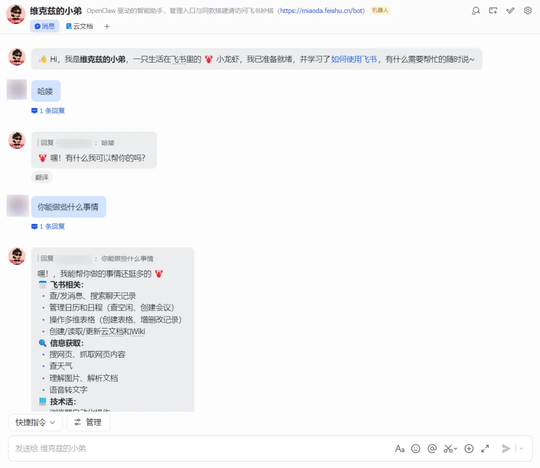 现在,我们回到飞书软件上进行对话测试,很流畅: