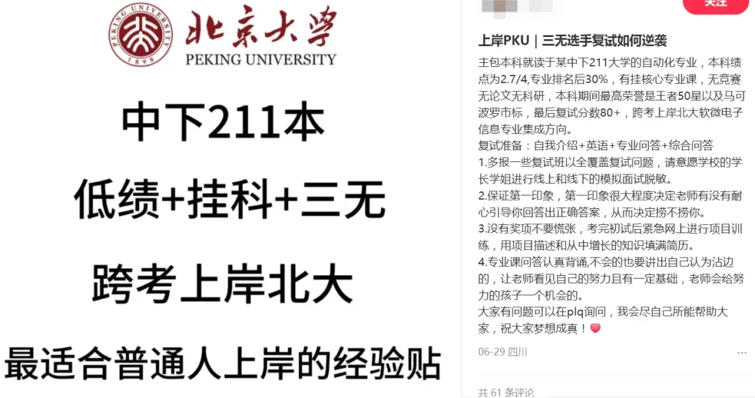 “看到一篇笔记说‘无科研、无论文、无竞赛,低绩点且跨考逆袭TOP2’,瞬间信心爆棚!结果自己投递时,连初审都没过……”