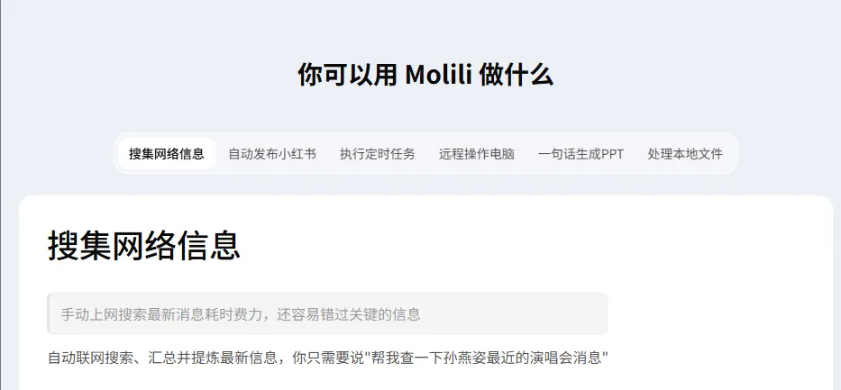 Molili作为国内首家OpenClaw 国产化替代方案(1月底发布),聚焦本土化使用场景,以“一键安装免配置、中文适配更精准、国内主流模型全覆盖、安全可控更安心”为核心特点,彻底打破原版 OpenClaw 的使用壁垒,是OpenClaw类型产品的完美国产化升级替代,兼顾专业性与易用性,适配国内用户的使用习惯。