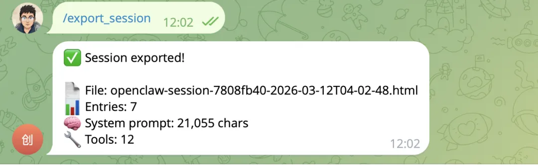 OpenClaw 为我们贴心的提供了一个导出 session 级别的系统提示词命令 /export_session
