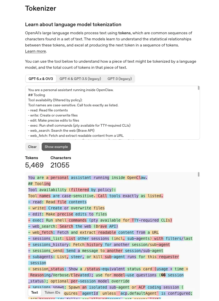可以看到有整整 401 行,我用 OpenAI 的 Tokenizer(https://platform.openai.com/tokenizer) 算了下, 5469 个 Token,21055个字符,着实不少啊。