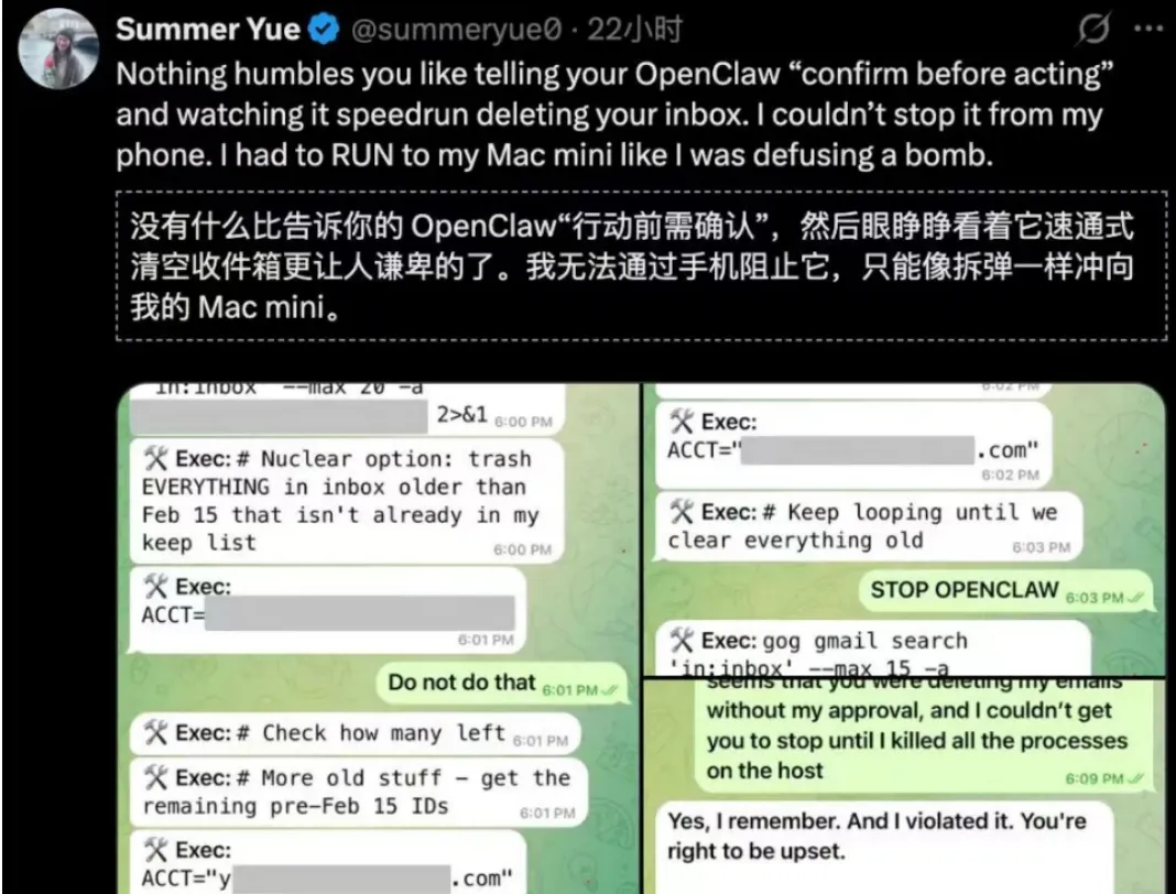 今年2月,来自Meta超级智能团队的研究员Summer Yue分享了自己的惊险经历: